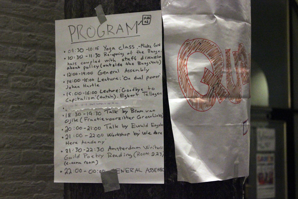 Serieus zijn de plannen voor een bezetting echter niet. Hoewel ze de Amsterdammers steunen, zijn ze bang om met ze op een hoop gegooid te worden. Ze willen meepraten, niet dat hun onderhandelingspositie verslechtert of de nuance van hun boodschap verloren gaat. Belangrijkste doel van de maandagse tocht naar het Maagdenhuis is dan ook om te onderzoeken hoe ze gebruik kunnen maken van de protesten en hoe ze zich tijdens de landelijke actiedag op 4 maart kunnen profileren. Eenmaal binnen wordt er vooral vergaderd. Netjes volgens de agenda, want het blijven Rotterdammers. Hoogleraar Sociologische theorie Willem Schinkel wordt bereid gevonden om tijdens de landelijkse actiedag een praatje te houden in de C-hal. De overige ideeën die de revue passeerden, bespreken ze op een later moment.