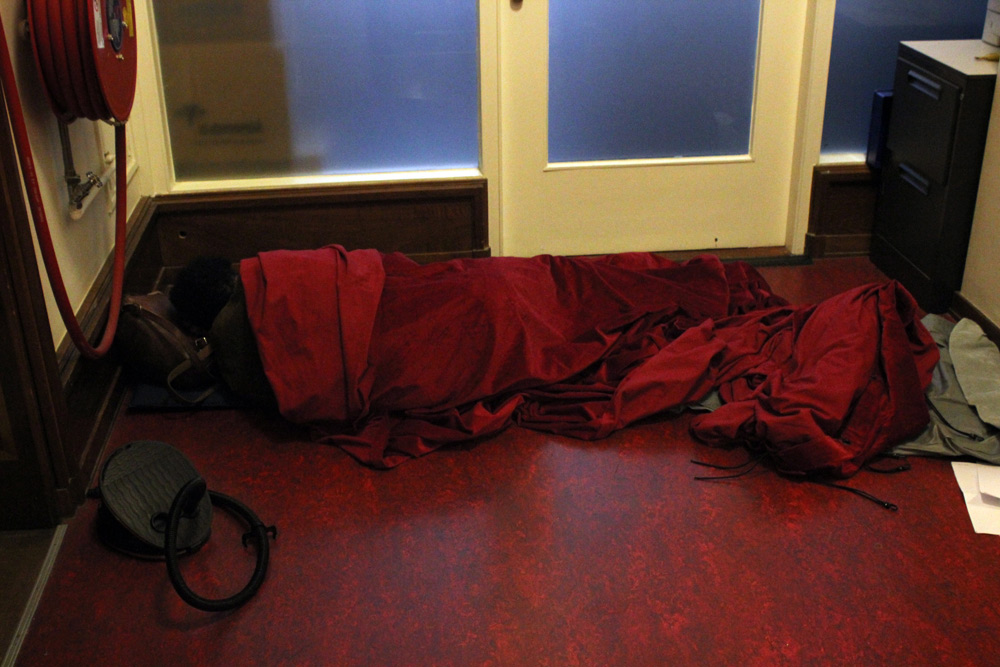 Bijna iedere dag is er een vertegenwoordiger van Philosophy Ground in het Maagdenhuis, vertelt een van de studenten in de trein naar Amsterdam op maandag 2 maart. Ze brengen een bezoek aan de bezetters van het historische pand. “We willen vooral in de gaten houden wat daar gebeurt”, vertelt de inmiddels afgestudeerde Martijn Samson, voorzitter van de studenten van Philosophy Ground. “Het gaat nu zo snel, voor je het weet loop je achter de feiten aan”, vult Thijs Heijmeskamp aan. Op het perron zijn ze nog met z’n drieën, maar al gauw sluiten drie medestudenten aan. De rest is al in het Maagdenhuis of komt later. Wanneer faculteitsraadslid Maria Brederode vertelt dat de decaan heeft toegezegd dat er een student in het reorganisatieteam komt, is de stemming opperbest. De hele treinrit tot aan Amsterdam Centraal verandert in een actievergadering. Ze maken plannen, bellen met hun medestudenten die thuis zijn gebleven of al in het Maagdenhuis zijn en ja, ze speculeren ook over welk gebouw op de campus het makkelijkst te bezetten is.