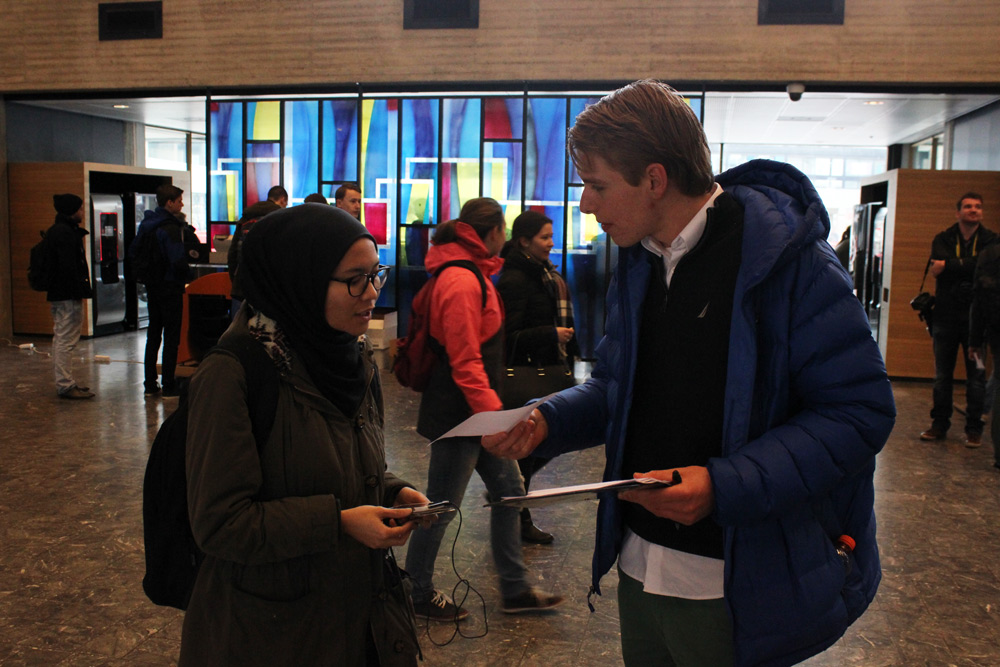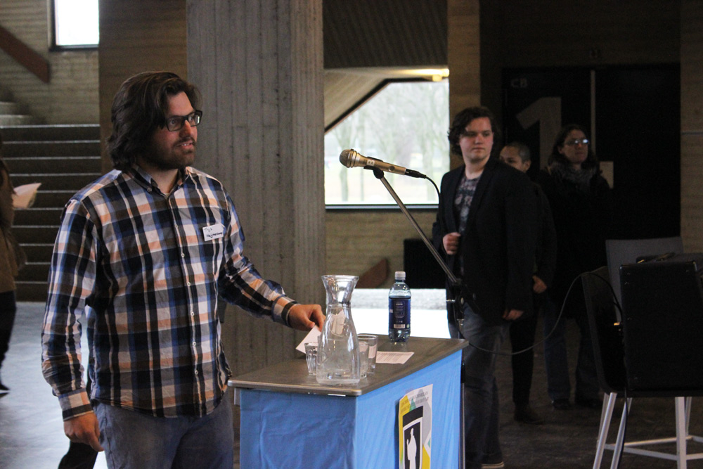 Om 17.00 uur is Philosophy Ground weer aan zet. Het is volle bak op de tribunes van de C-hal. Ruim 150 studenten komen opdagen om te luisteren naar de visie van socioloog Willem Schinkel. Zijn lezing wordt ingeluid door filosofiestudent Thijs Heijmeskamp, die nog eens benadrukt waarom ze vandaag bijeen zijn: “De discussie reikt verder dan begrotingstekorten. Het College van Bestuur, de decaan, wetenschappers en studenten moeten de vraag stellen wat de waarde van filosofie voor deze universiteit is. De ‘E’ in EUR staat niet voor Economische, maar voor Erasmus. Durf het debat in het openbaar te voeren.”