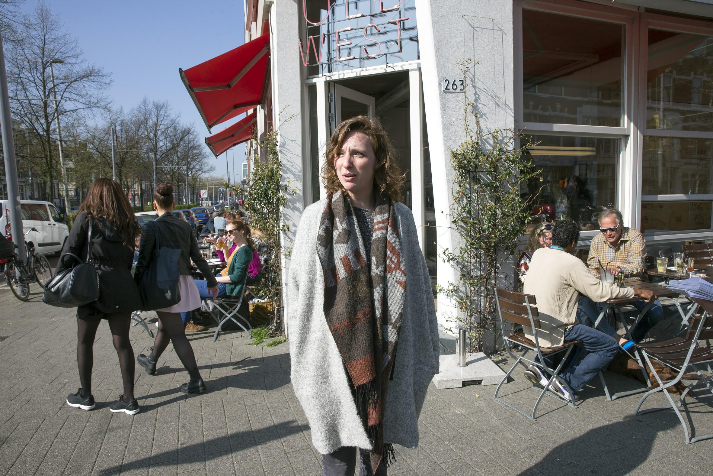 Of ze in de wijk wel eens wat geks heeft meegemaakt? Eline Hanssen (23) lacht. Waar moet ze beginnen? Laatst nog bijvoorbeeld. Toen ze op de Nieuwe Binnenweg een praatje stond te maken, een wildvreemde man haar hand vastpakte en haar spontaan de liefde verklaarde. Of die keer dat haar huisgenoot een man door de wijk zag rennen met een groot mes. Anekdotes zat. Ondertussen bedelt een volwassen man voor haar deur om geld. Hij zegt een kauwgombal te willen kopen. Iets verderop zoekt een duidelijk opgehitste dertiger naarstig naar de ‘hoertjes’. Ja, wonen in West is een avontuur.