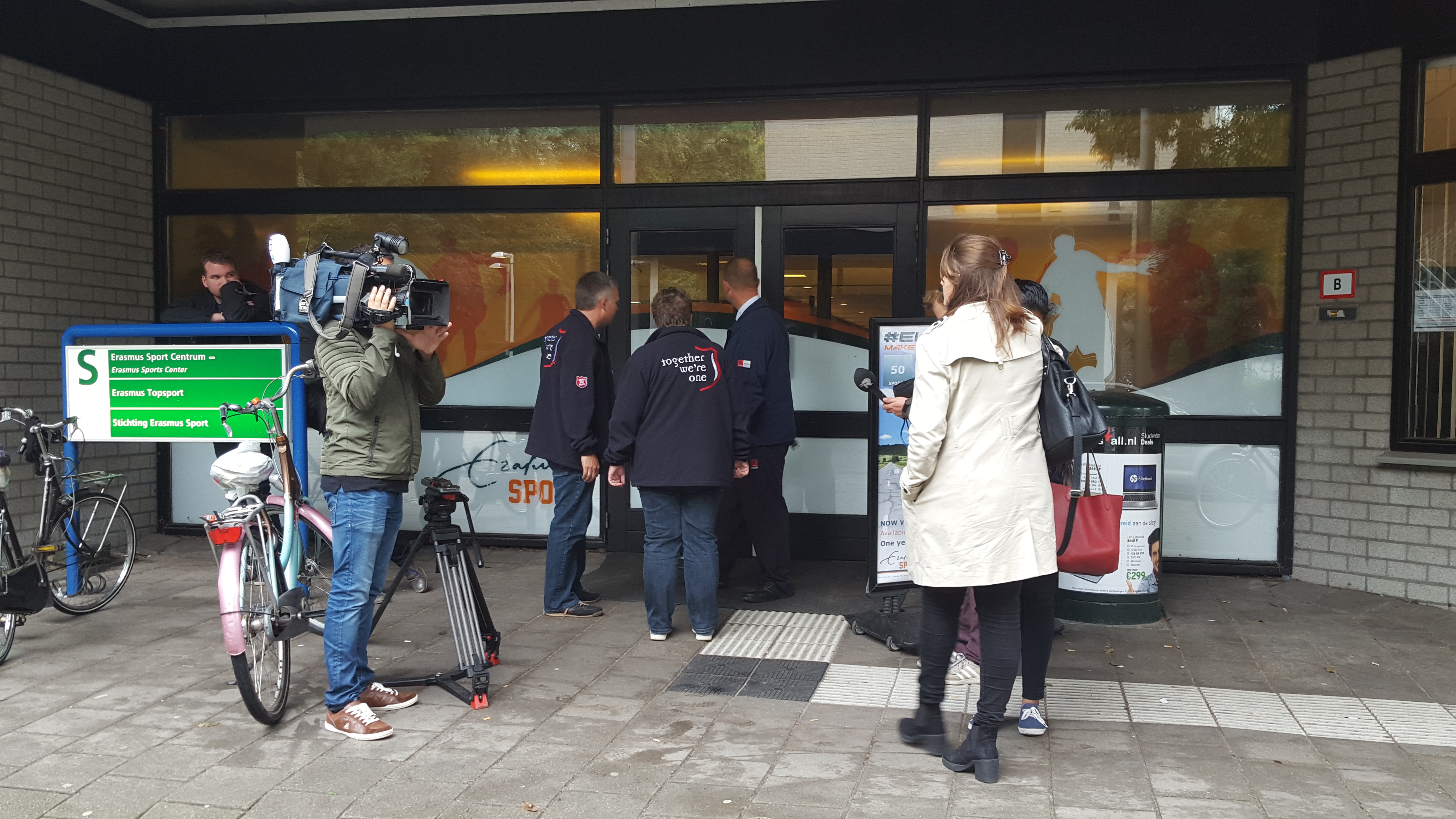 18.25: Aanwezige journalisten krijgen nu een rondleiding door het sportgebouw. 120 studenten hebben zich al aangemeld om te helpen. Hele sportteams hebben zich aangemeld. Het Leger des Heils verzorgt de maaltijden.