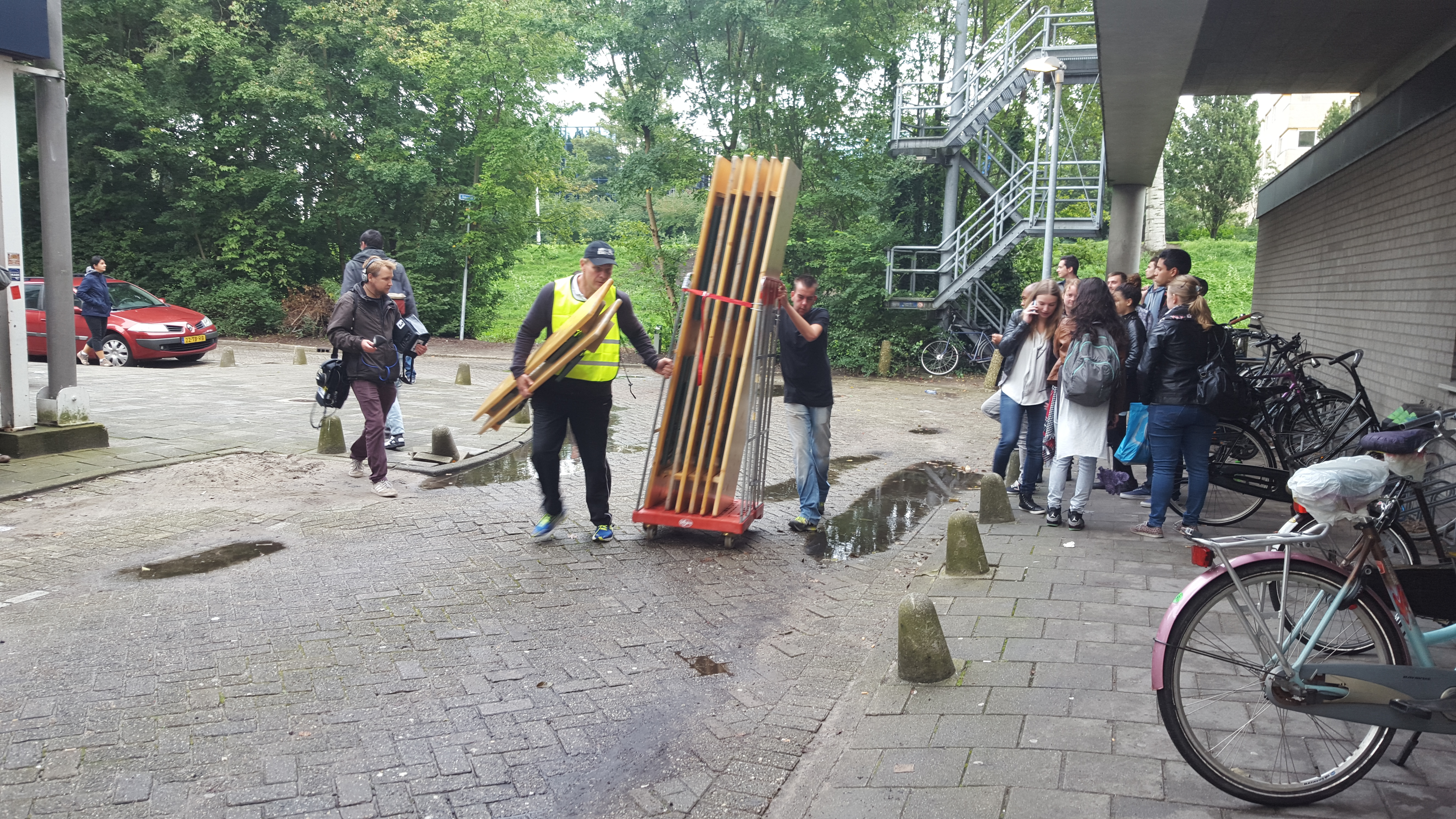 17.28: Het sportgebouw wordt inmiddels ontruimd. Studenten moeten eruit, zodat de voorbereidingen voor de opvang kunnen beginnen.