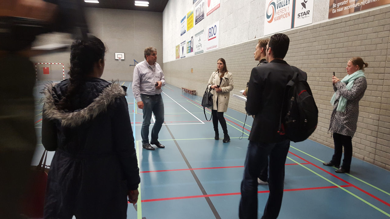 18.10: Vrijwilligers van het Leger des Heils druppelen binnen. Ondertussen brengen medewerkers van Erasmus Sport banken het sportgebouw in.