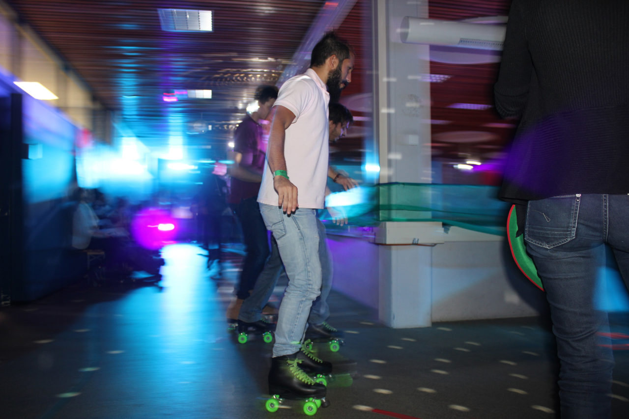 De UB is speciaal voor vanavond omgetoverd tot een disco. De rijen met boekenkasten maken plaats voor een rolschaatsbaan, een dansvloer en bar. Reden voor dit feest? De UB sluit tijdelijk haar deuren vanwege een twee jaar durende renovatie.