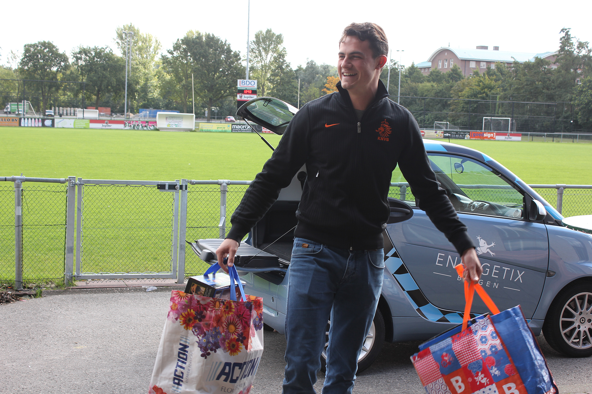 Om half elf kwam de eerste barmhartige Samaritaan speelgoed en kleding brengen. Student Jeroen Wessels (23) stapt even later uit de auto en tilt vijf grote zakken naar binnen. “Toen ik hoorde dat Antibarbari speelgoed inzamelde, ben ik meteen naar mijn ouders gereden”, vertelt Wessels. “Samen met mijn ouders heb ik gezocht naar bruikbaar speelgoed. Dit is de eerste lading, mijn ouders zijn ondertussen nog extra tassen aan het vullen.” Wessels vind het niet meer dan logisch dat hij de vluchtelingen op deze manier probeert te helpen. “Er zitten 200 mensen in het sportcentrum die helemaal niks hebben. De maatschappij moet nu opstaan en die mensen helpen. Wij hebben allemaal spullen die we niet gebruiken, waarom delen we die niet met mensen die het nodig hebben?”
