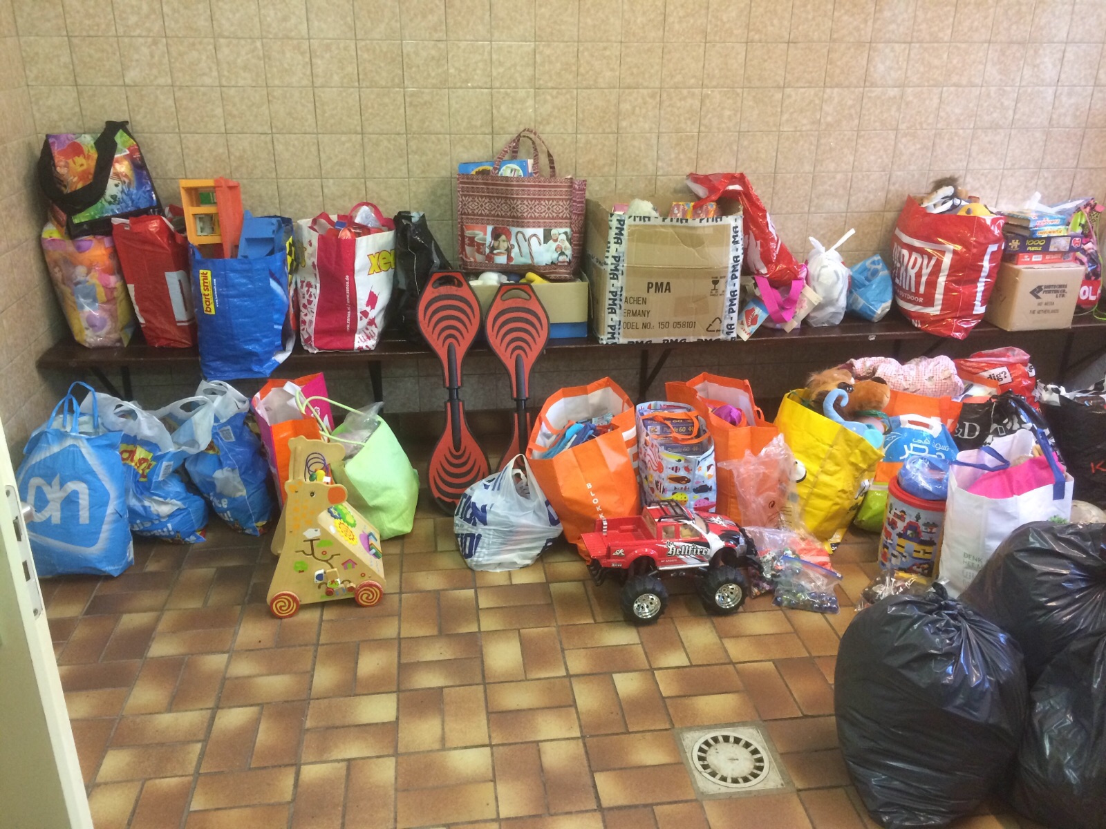 18.00: Voetbalvereniging Antibarbari laat bij monde van voorzitter Esther Vermaat weten nog tot vanavond door te gaan met de inzameling. “Het begint nu echt te lopen. Sommige leden kunnen pas vanavond spullen komen brengen, dus we gaan nog even door.”