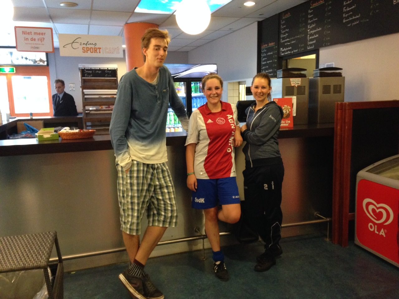 Anna (studentenzaalvoetbalclub RS) en Auke en Joanne (Antibarbari) staan rond half 4 wat uit te hijgen bij de bar van het sportcentrum. Ze vonden het een bijzondere ervaring om met de vluchtelingen te voetballen. Joanne: “Toen ze vanochtend belden dacht ik, ach laat ik ook eens wat nuttigs doen voor de mensheid. Beter dan de hele dag in bed liggen en series kijken.”