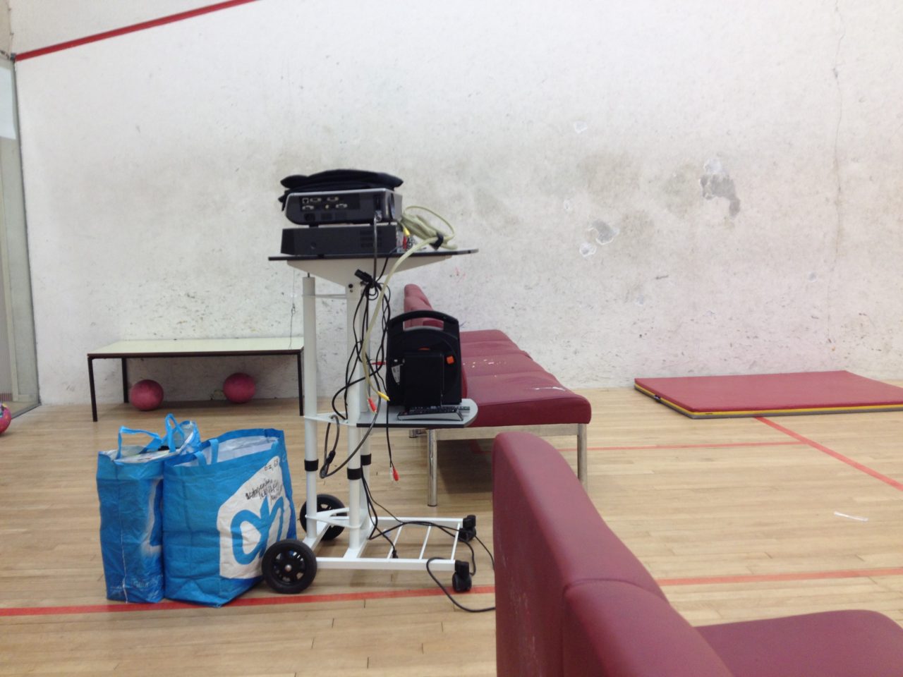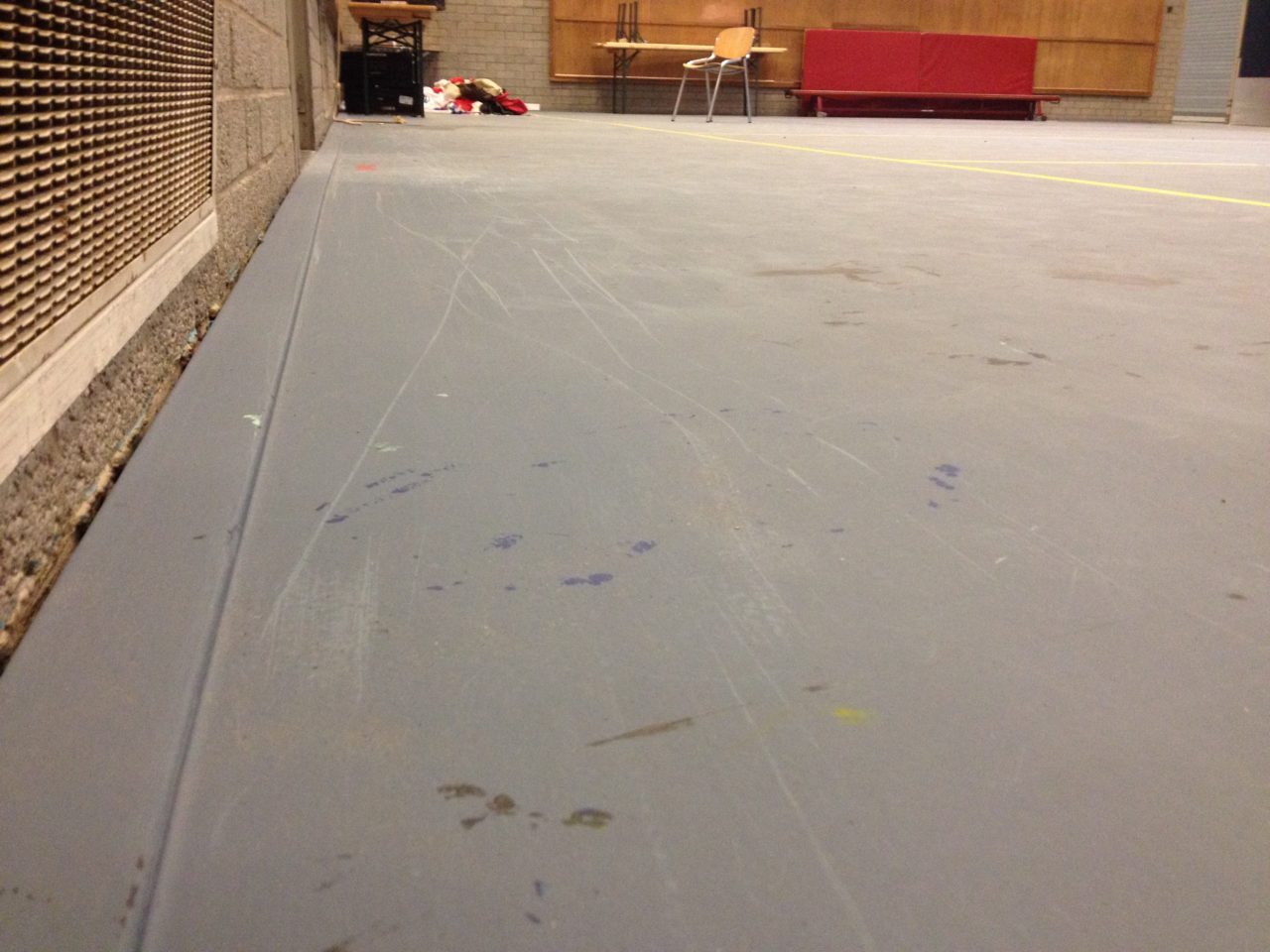 Het sportgebouw is redelijk intact gebleven. “De kunstsessies in zaal 2 hebben voor wat extra belijning gezorgd”, vertelt De Ruijter. “En de tafelvoetbaltafel ging de eerste avond al kapot, maar die is nog wel te repareren.”