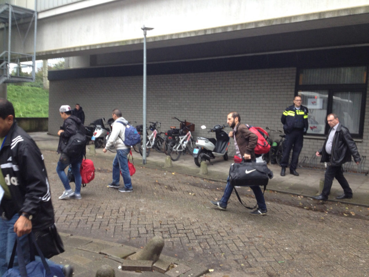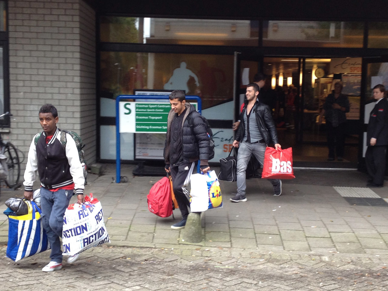 Vluchtelingen vertrekken bij Erasmus Sport.