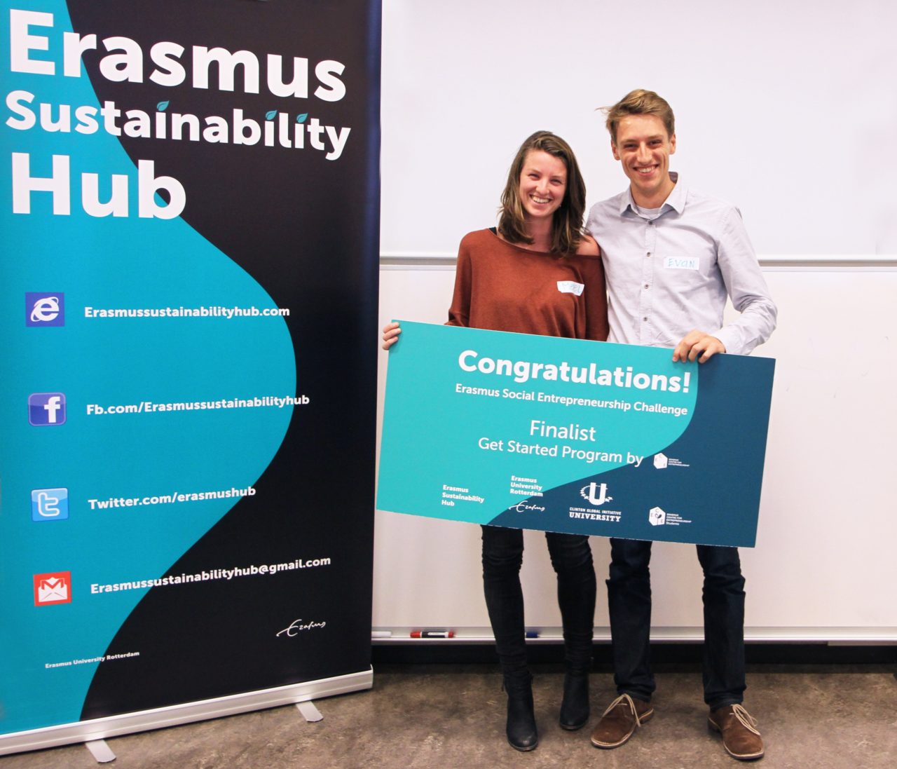 Uit de eerste pitchronde van 6 november kwamen al drie winnaars: OrganoBike, UniOrg en Healthy Munchies. Afgelopen vrijdag leverde ronde twee weer drie nieuwe finalisten op. Allemaal studentenprojecten met een sociale- en een ondernemerskant. Dat is het idee achter het Clinton Global Initiative, dat in 2008 is gestart en waaraan dit jaar 59 onderwijsinstellingen van over de hele wereld meedoen. In Rotterdam wordt het initiatief getrokken door de Erasmus Sustainability Hub and het Erasmus Centre for Entrepreneurship.