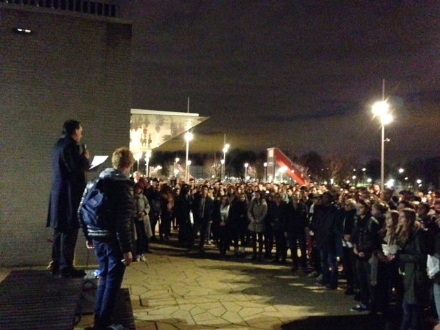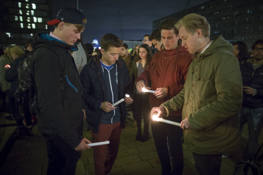 Zeshonderd studenten wonen herdenking Parijs bij op Erasmus Plaza