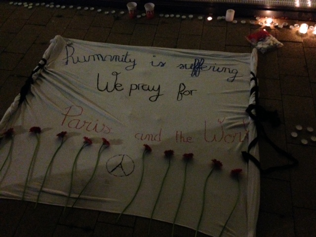Naar schatting zeshonderd mensen woonden maandagavond de herdenking van de aanslagen in Parijs bij. Een groep Franse studenten organiseerden de bijeenkomst op campus Woudestein. Rector Huib Pols sprak de aanwezigen toe, er was een minuut stilte en er waren veel waxinelichtjes.