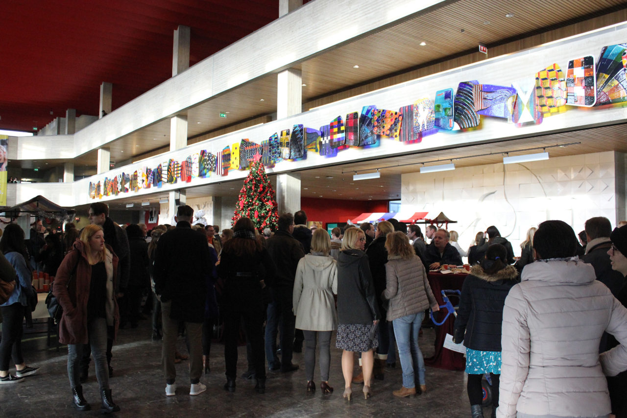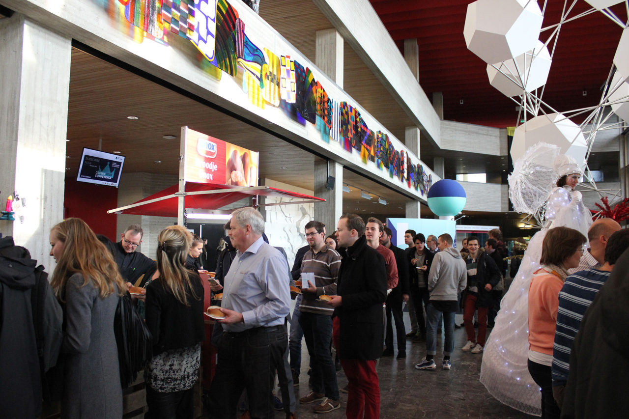 Door de vele kraampjes in de hal en de kerstman en kerstelven die rondliepen zat de stemming er goed in. Er was van alles te krijgen. Zo stond er een kraampje waar broodjes rookworst verkocht werden, kon je een glas glühwein krijgen en werd er erwtensoep uitgedeeld. Daarnaast kon je ook nog andere versnaperingen zoals pulled pork en katercocktails krijgen.