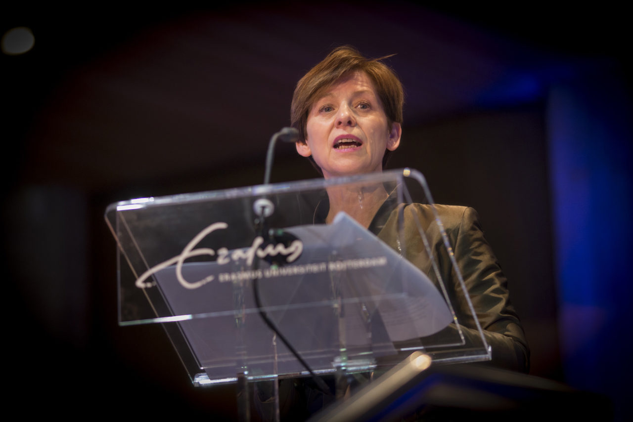 Naast het dankwoord blikte Baele in haar toespraak terug op 2015 en vooruit op 2016. “Er gebeurt heel veel op hetzelfde moment: internationalisering, een nieuwe campus, reorganisaties, personeel dat moet verhuizen, onderwijshervormingen, samenwerking met Rotterdam en nog veel meer. Ik begrijp dat het niet altijd gemakkelijk is in zulke turbulente tijden zo veel programma’s en initiatieven draaiende te houden. De werkdruk is voor veel mensen toegenomen, mede door het groeiende aantal studenten en onderwijsveranderingen.”