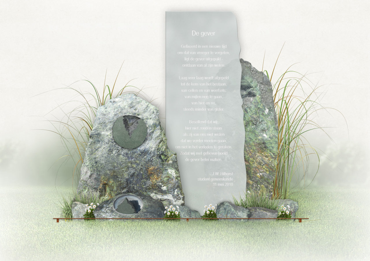 Een impressie van het 'body donation memorial' met daarop een gedicht van student J.W. Hilhorst.