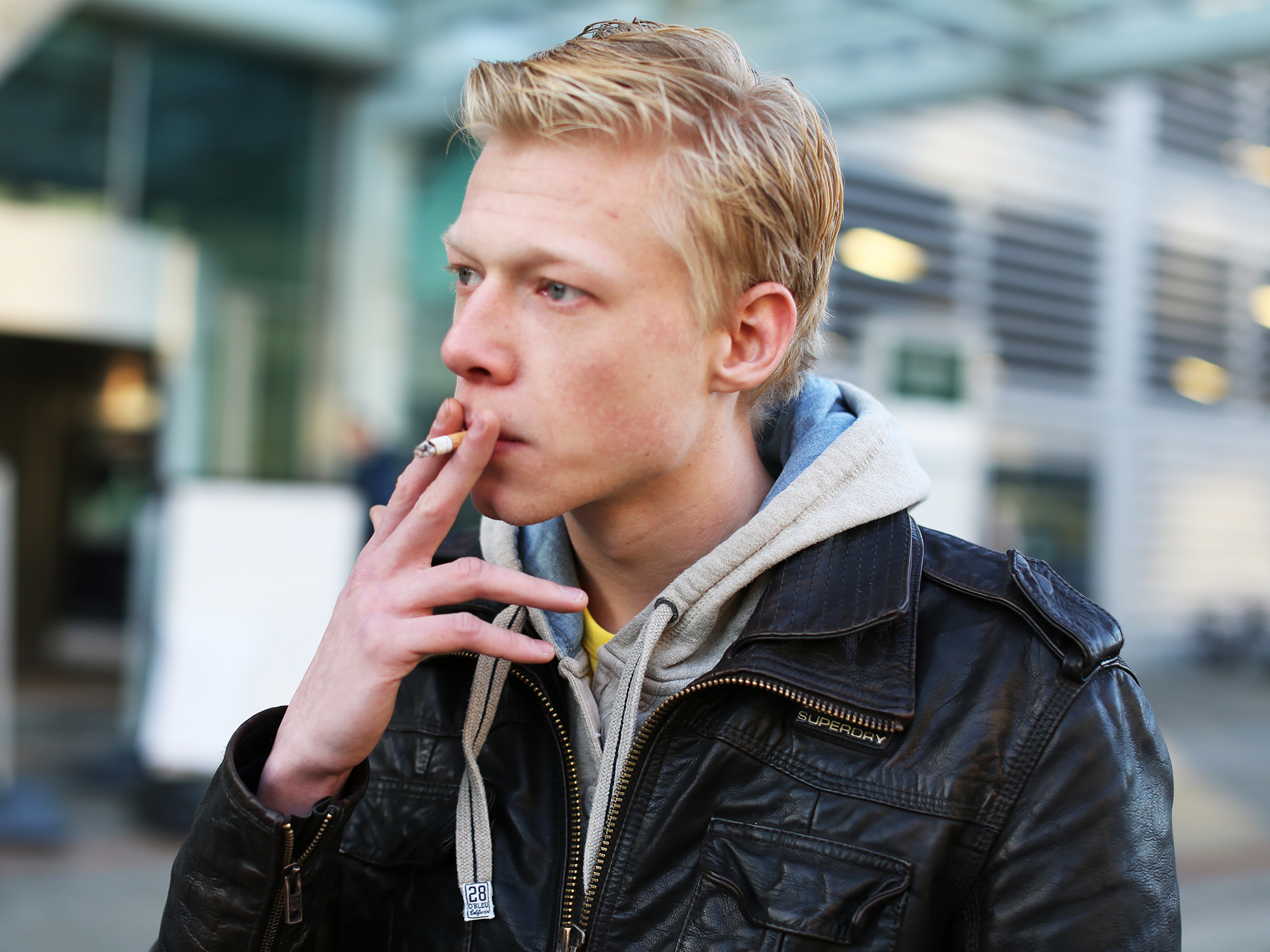 “Ik rook shag. Tien per dag en dat bevalt me prima. Als ik veertig ben, dan stop ik wel. Nu ben ik nog jong. Mijn longen zijn gezond. Waar ik wel van baal is dat de rokershoeken bij Psychologie ineens weg zijn. Nu moet ik helemaal naar beneden.”