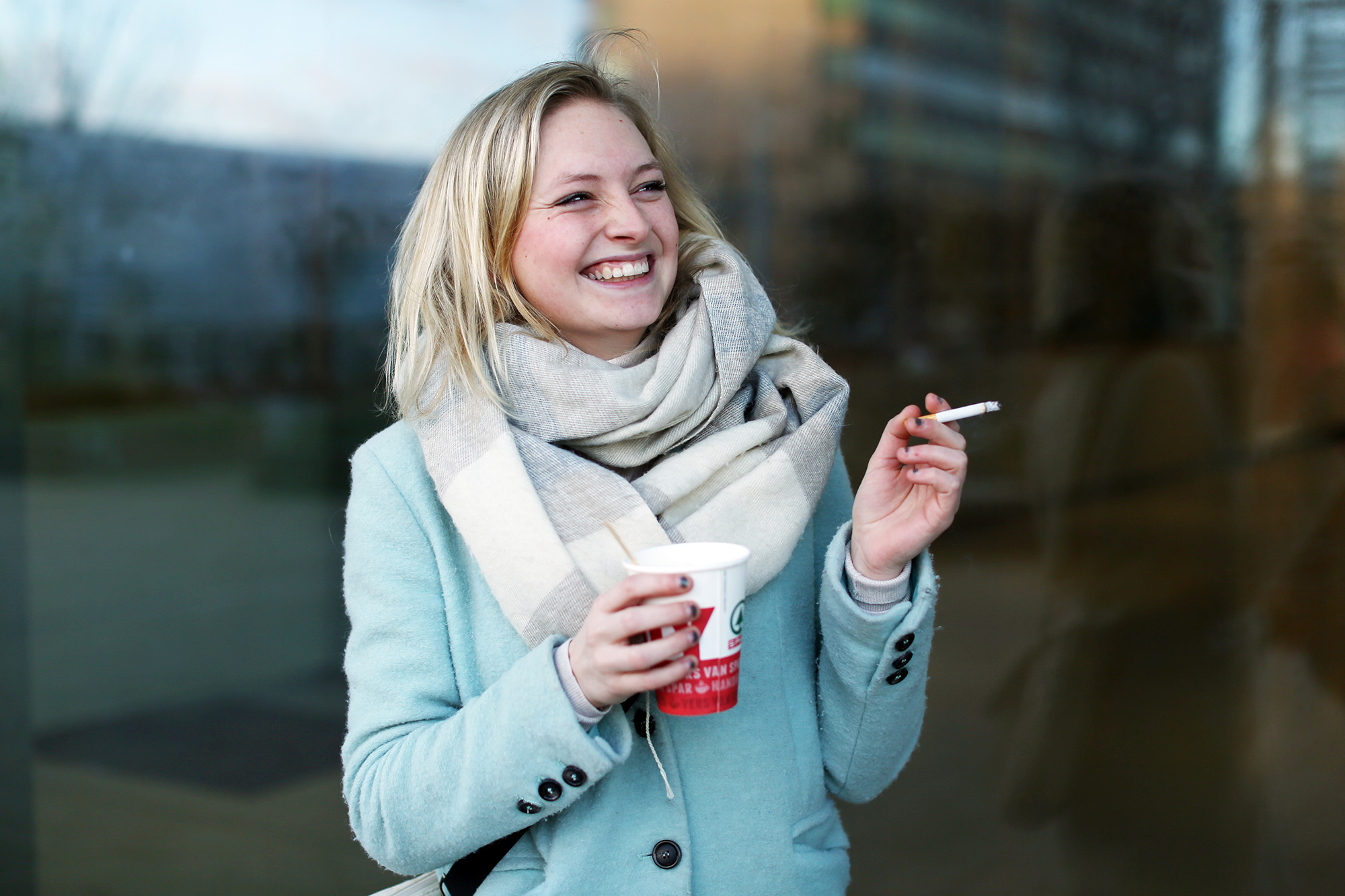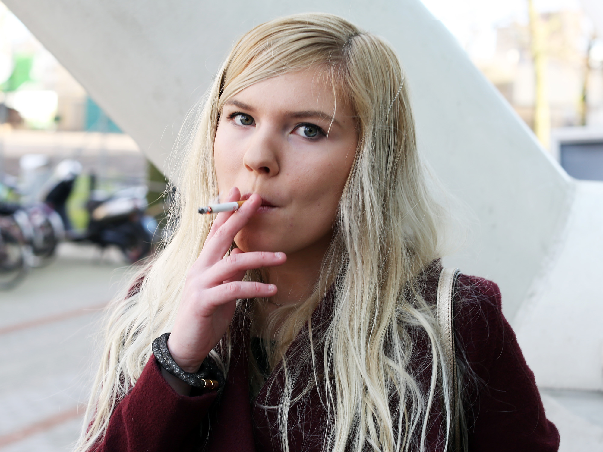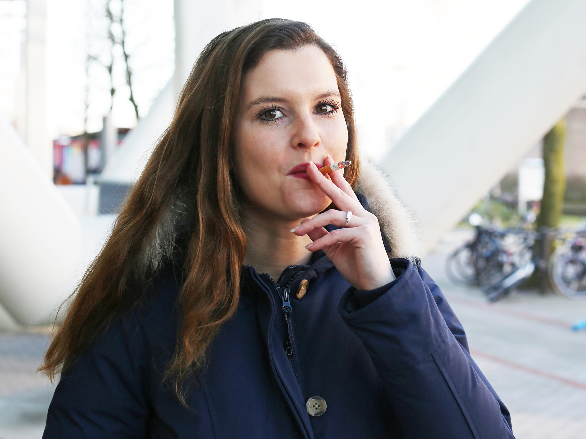 “Sinds mijn veertiende rook ik. Een half pakje per dag, het liefst buiten. Al mijn vriendinnen roken ook. Bij een wijntje hoort gewoon een sigaret; dat is toch gezelliger. Als ik zwanger ben, ga ik stoppen. Daar ligt voor mij echt de grens.”