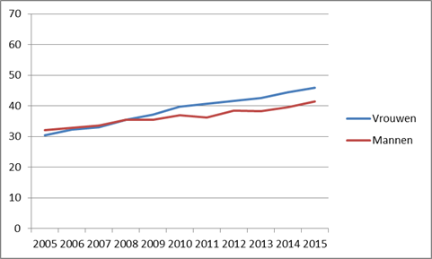 De gehele Nederlandse bevolking is steeds hoger opgeleid, maar het aantal vrouwen dat heeft gestudeerd groeit harder dan het aantal mannen. Dat komt niet alleen doordat meer vrouwen aan een studie beginnen dan zo’n tien jaar geleden. Ze doen het ook beter: vrouwen vallen minder vaak uit en studeren sneller dan mannen.