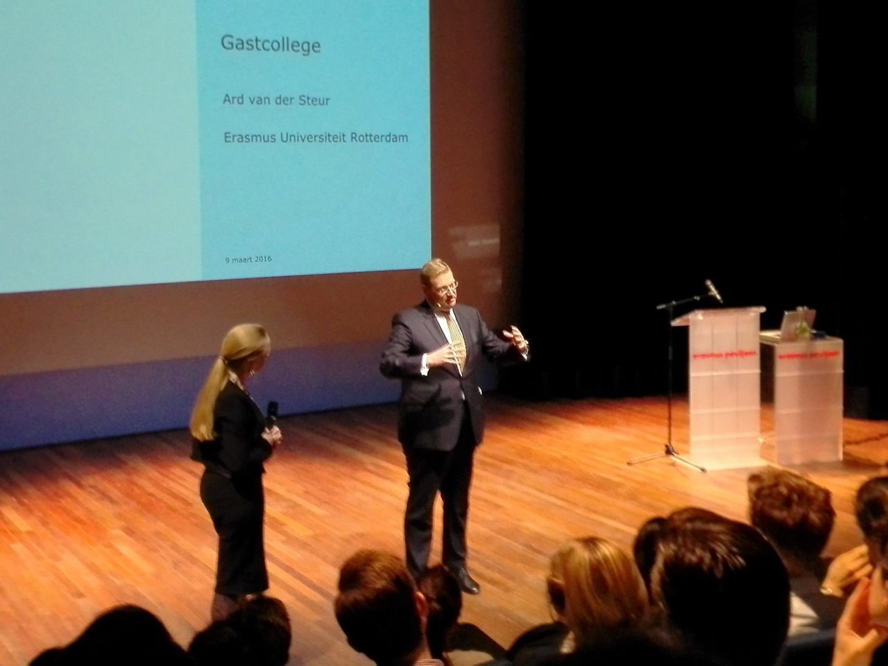 Normaal gesproken zit Ard van der Steur tegenover 150 politici in de Tweede Kamer, deze woensdag geeft de minister van Veiligheid en Justitie een gastcollege aan zo’n 150 studenten in het Erasmus Paviljoen.