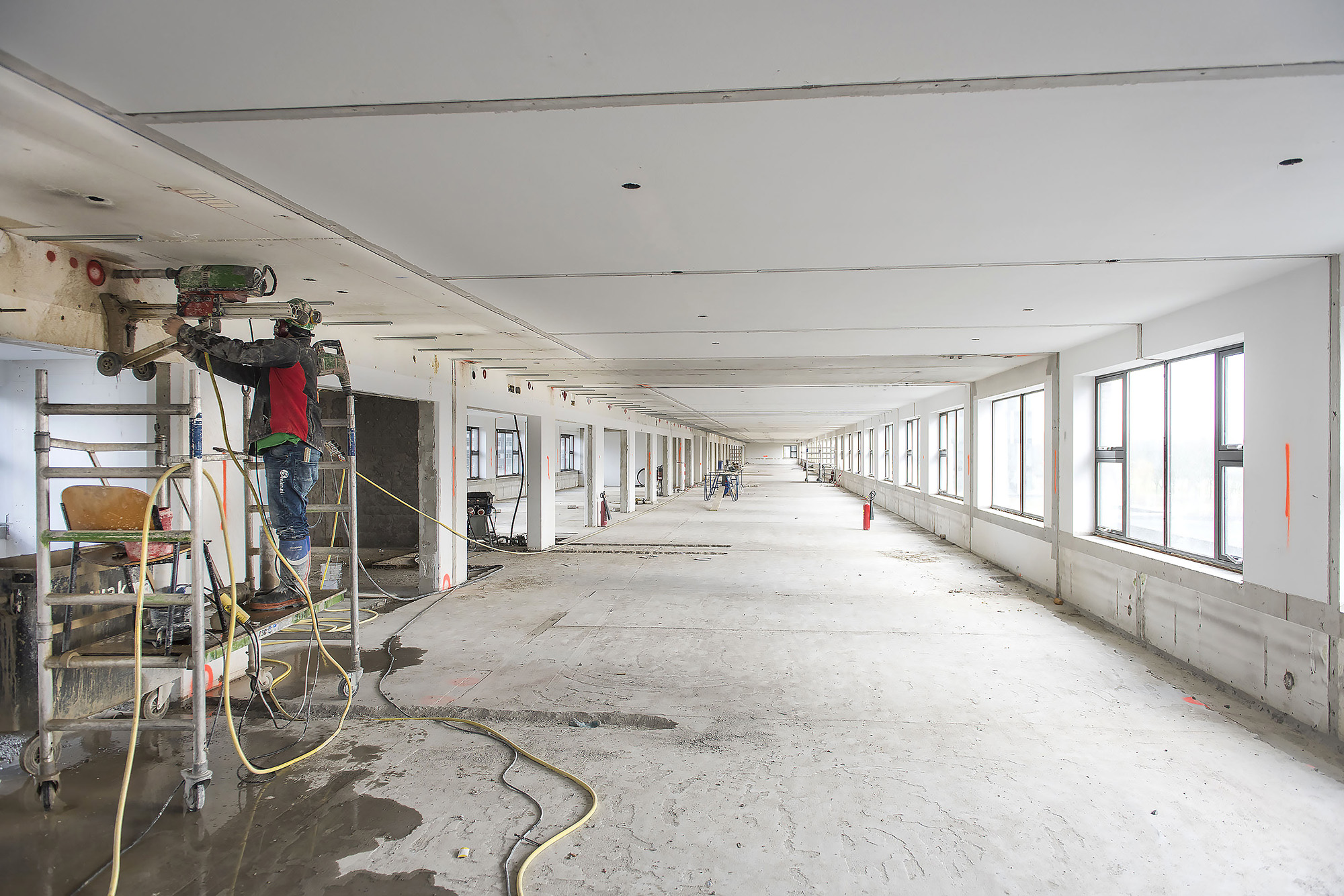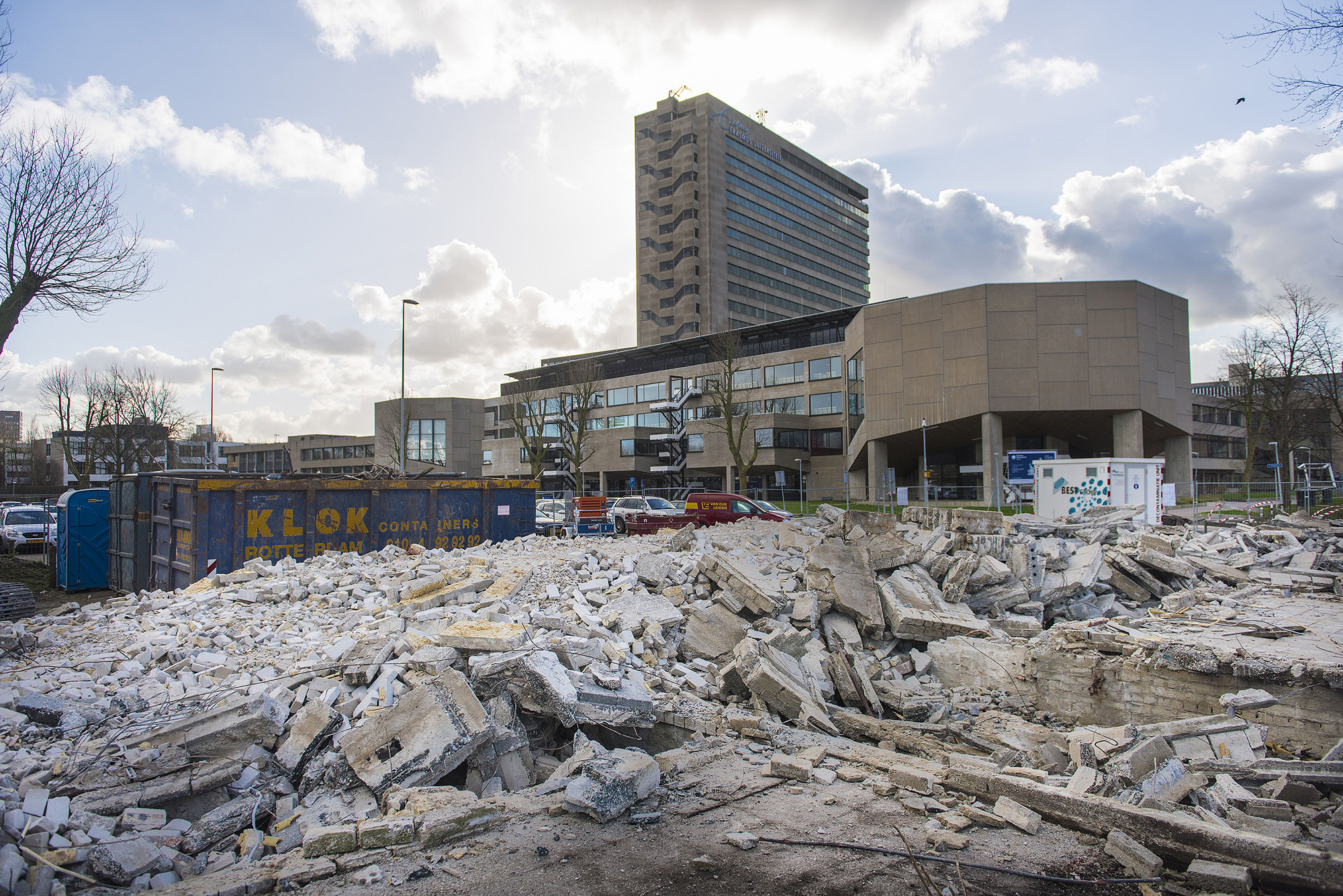 De verf in het Polakgebouw is nauwelijks opgedroogd en het tweede deel van de parkeergarage onder de Erasmus Plaza nog niet eens geopend, of er beginnen alweer twee nieuwe bouwprojecten op campus Woudestein. De sleutelwoorden voor de campus van de toekomst zijn: ‘lichter’ en ‘ruimer’. En dus slaan de slopers als opmaat gaten in het dak van het L-gebouw.
