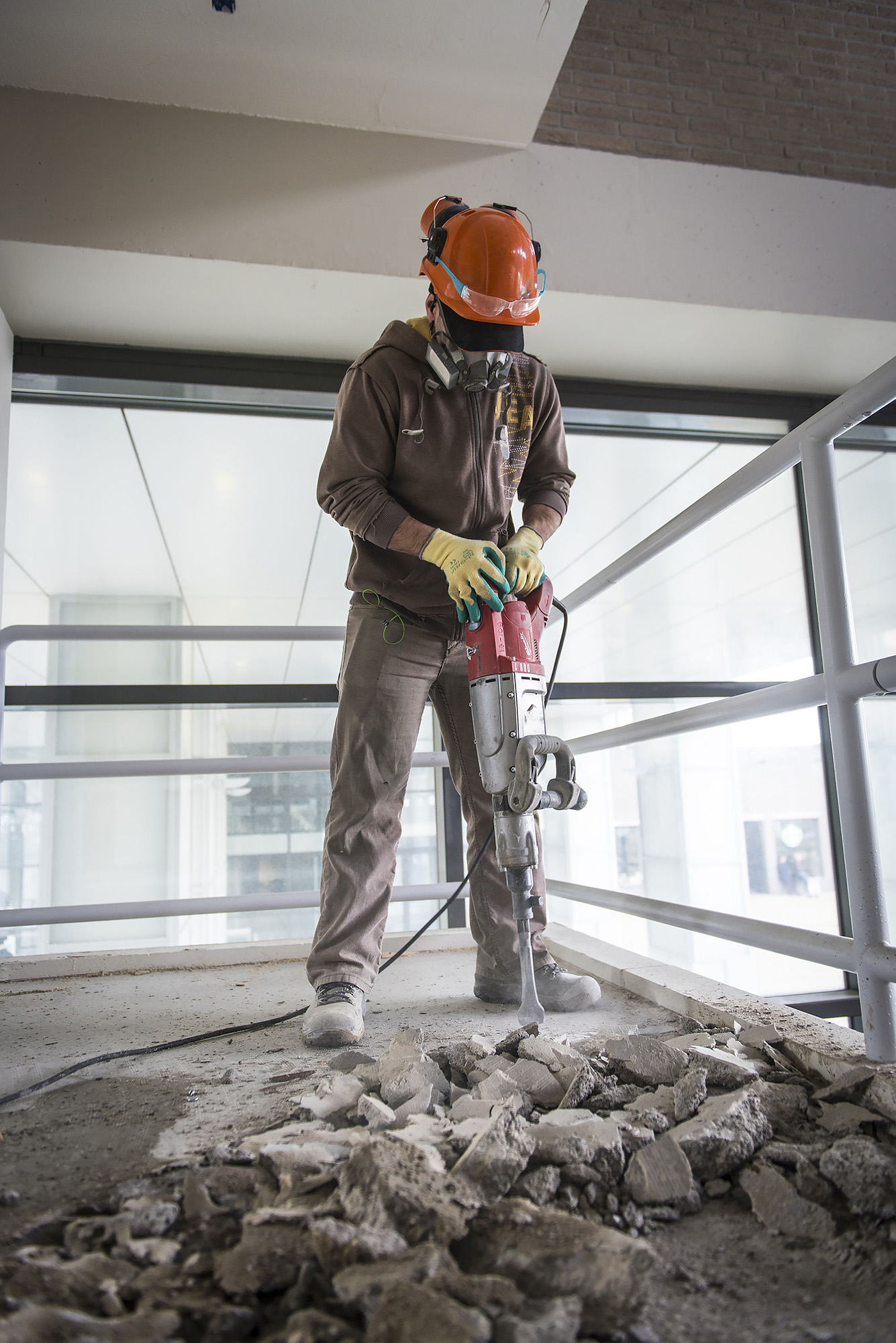 Ook de Universiteitsbibliotheek wordt ondertussen voorbereid op de toekomst. De vloeren gaan eruit, er komen ‘vides’ en natuurlijk wordt ook hier alles ‘lichter’ en ‘ruimer’, met 900 studieplekken en een nieuwe entree aan de Institutenlaan. In het collegejaar 2017-2018 kun je zelf zien hoe licht en ruim alles geworden is, maar de komende maanden heerst in de bibliotheek en het L-gebouw eerst nog het ijzeren regime van de sloophamer.