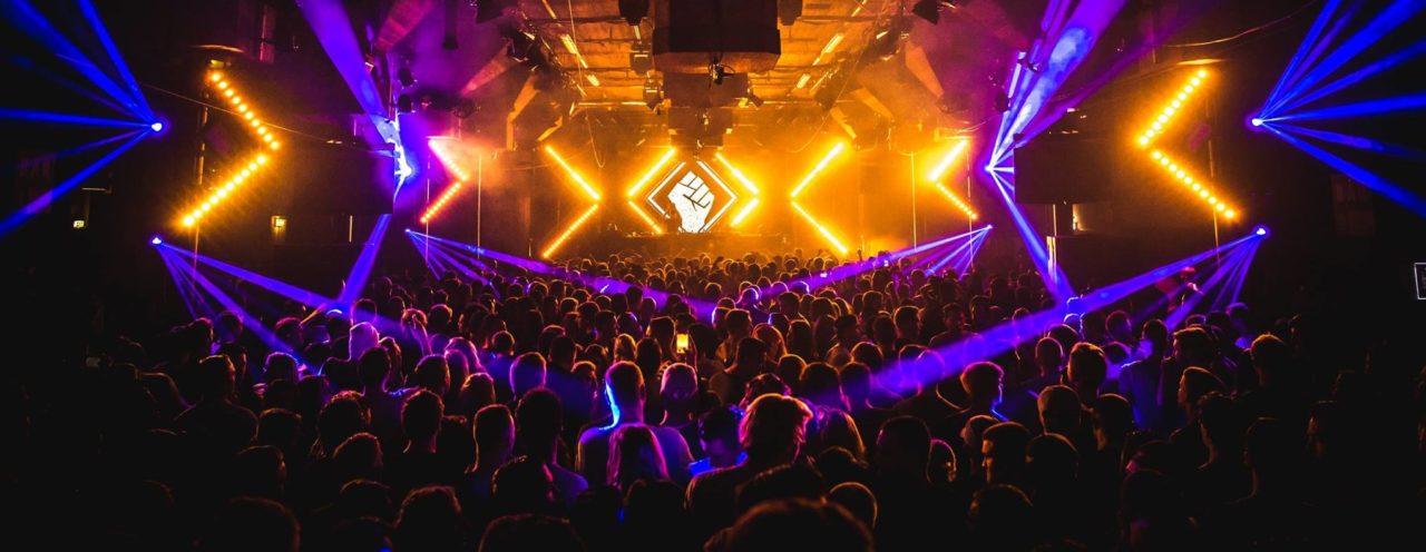 De lengte van de rij is voor niemand een verrassing aangezien Rotterdamse Rave inmiddels een begrip is in de (Rotterdamse) technoscene. Vrijwel elke editie wordt vergezeld van de leus ‘SOLD OUT – NO DOORSALE’. Ik heb het geluk dat ik deze rij mag overslaan en binnen zelfs een backstagebandje om m’n arm krijg, wat letterlijk en figuurlijk een uniek perspectief geeft op dit feest.