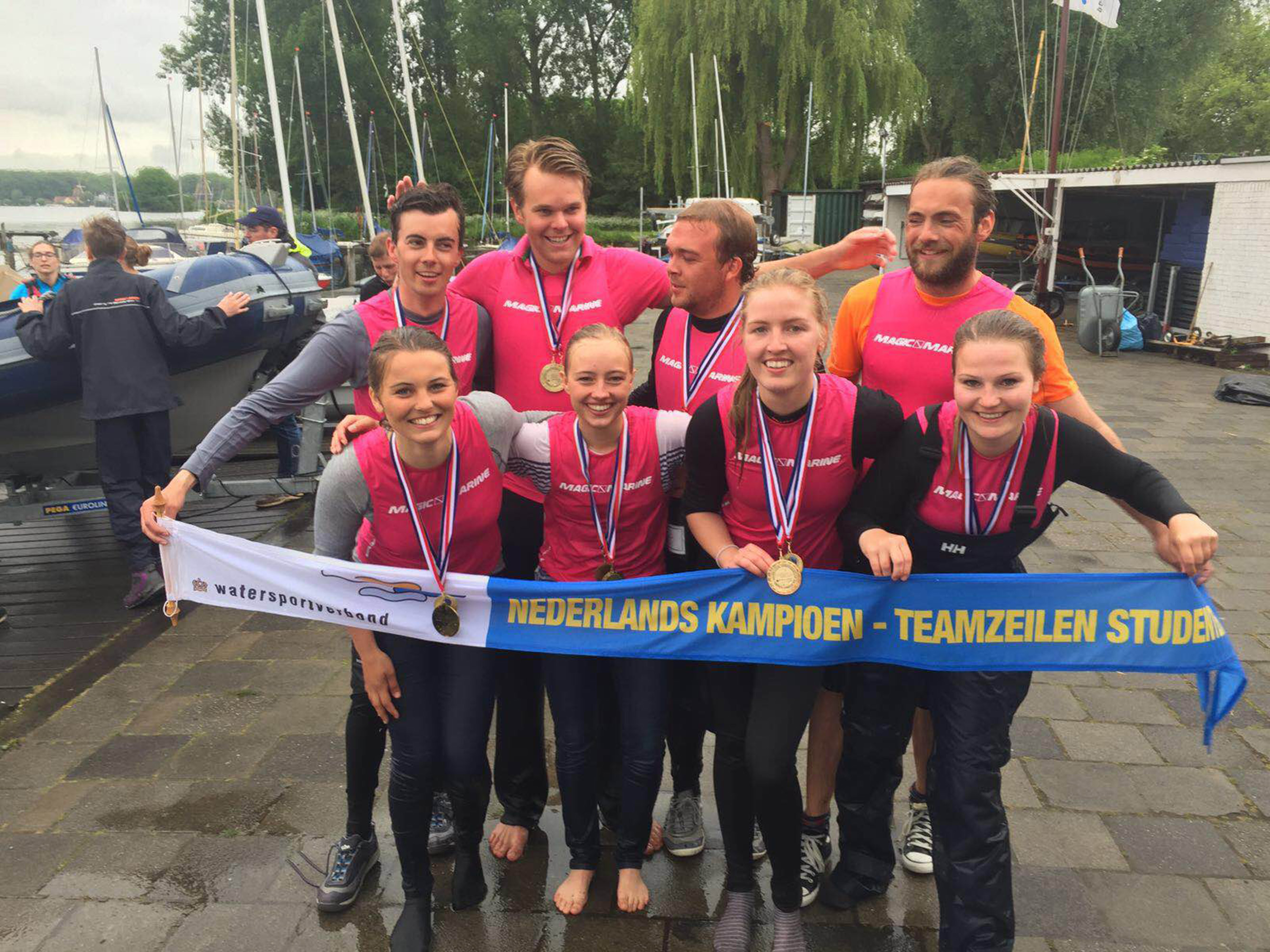 Het team van de Rotterdamse studentenzeilvereniging De Zeil heeft in het weekend van 21 en 22 mei voor het tweede jaar op rij het Nederlands Studentenkampioenschap Teamzeilen gewonnen. Collegelid Bart Straatman doopte zaterdag ook de ‘Make it Happen’, de nieuwe zeilboot van de zeilvereniging met officiële EUR-sponsoring.