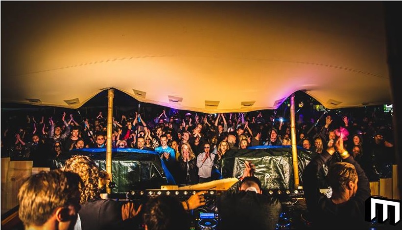 Na de standaard routine: kluisje volproppen, naar de dixi’s, muntjes halen en het eerste drankje bemachtigen, beginnen we aan ons eerste rondje over het festivalterrein. De harde beats die uit de grote witte tent (square stage) komen, lokken ons naarbinnen. Het is heel leuk om te merken dat, ondanks dat de weergoden ons niet goed gezind zijn, de sfeer er al lekker in zit en er alleen maar big smiles om ons heen te zien zijn!