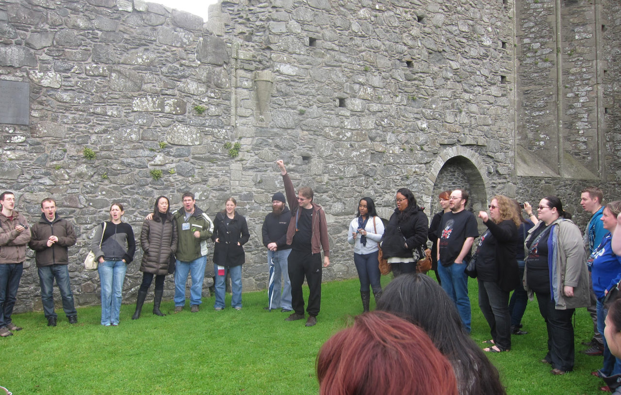 • Fans spelen de kroning van de ‘King of the North’ na bij Inch Abbey in Noord-Ierland.