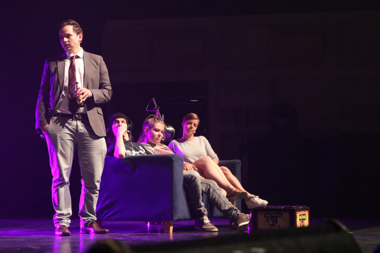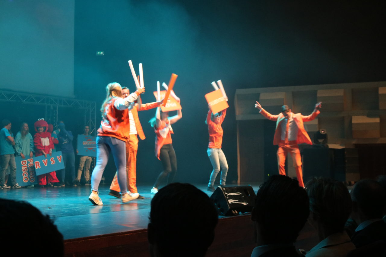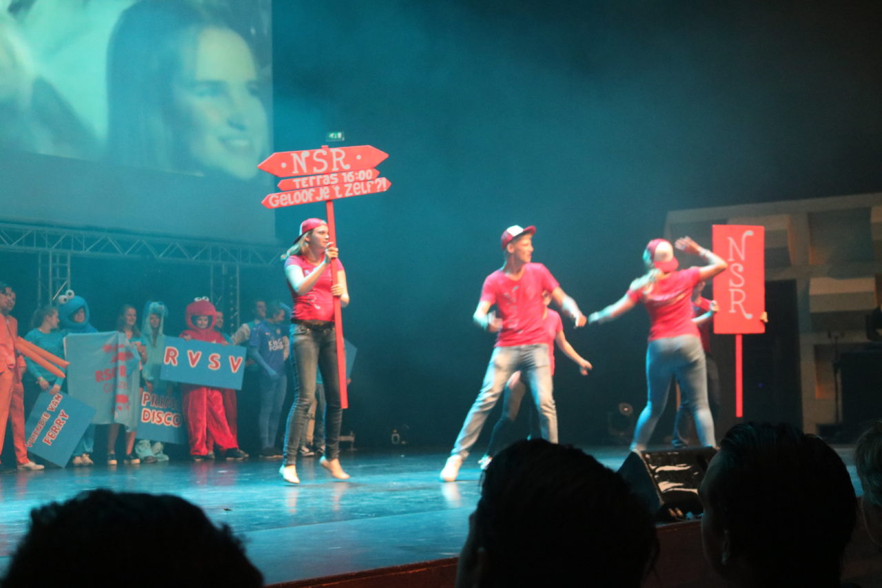 Nieuw dit jaar waren de theatrale intermezzo’s waarin het leven van een student op kamers – zij het ietwat aangedikt – werd uitgebeeld. Moraal van het verhaal: er wordt aan alle kanten aan je getrokken, kies dan ook je eigen pad.