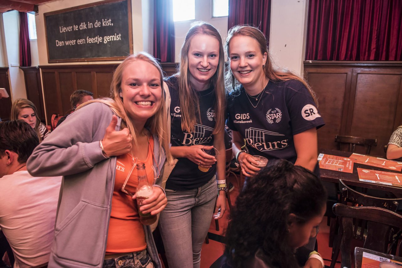 Elders komen typische Dag 1-gesprekken op gang. Gesprekken die niet gaan over de wilde nacht ervoor, maar inhoudelijk van aard zijn. Een Pool, eerstejaars International Bachelor Economics and Business Economics (IBEB), betoogt over de welvaartsstaat. Een ander merkt op dat het, gezien de drukte, fijn is even te kunnen zitten. Alles tegen de stilte.