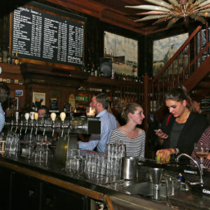 Je voelt je een soort monnik, daar nippend van het bier in een donker, houten pand met een openhaard en schilderijen uit vervlogen tijden. Dat is leuk, dat is fijn – een authentieke zaak tussen al het hipstergeweld. Nadeel is de lucht: je kleding ruikt eenmaal thuis nog altijd naar verbrand hout.