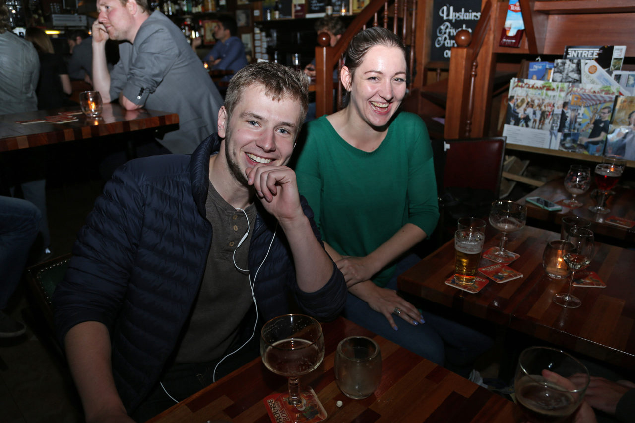 Aan de barman heb je overigens een goede. Zijn advies is nuttig, al laat hij lang op zich wachten. De vraag ‘heeft u wat fruitigs’ beantwoordt hij met het brengen van een pimpelpaars biertje. Fruitig: check. Hogere wiskunde is dat niet, prettig wel.