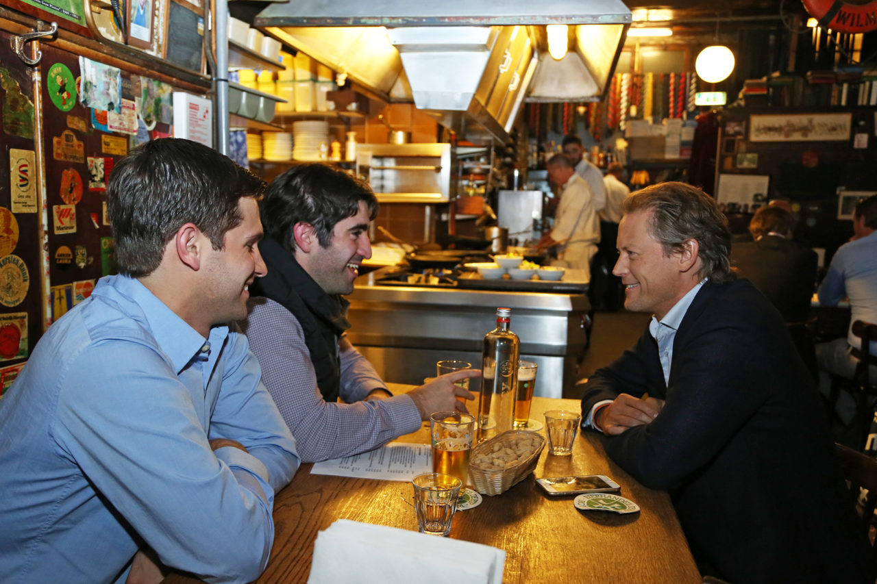 De Pijp is geen eigendom van het corps, wel heeft de zaak nauwe, historische banden met de leden. Het klantenbestand bestaat dan ook goeddeels uit oud-leden. Dat merk je aan tafel. Daar praten de gasten – jasje dasje – over ‘carrièretijgers’ en tennistoernooien. Ook gehoord: ‘’Hij is best leuk als ‘ie niet dronken is.’’