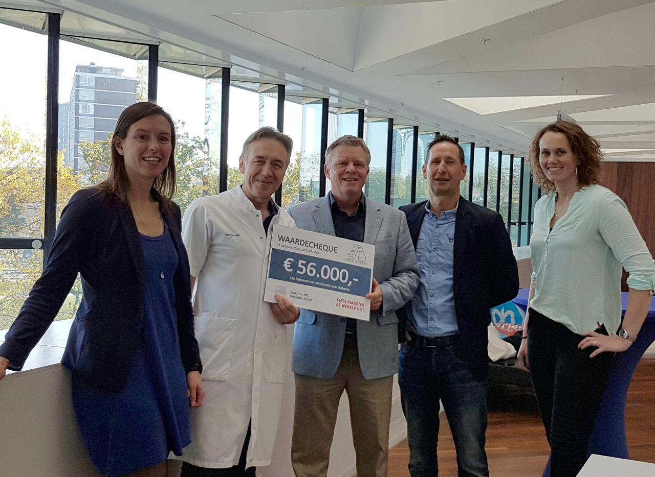 De Erasmus MC – Tour de Rotterdam heeft dit jaar 56.000 euro opgebracht voor onderzoek naar diabetes. Hoogleraar Eric Sijbrands nam deze week de cheque in ontvangst.