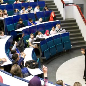 En die daadkracht is ook nog eens van kribbe tot kist. Dus zit je als jochie van twaalf al in de collegebanken van het Erasmus MC voor het Erasmus Junior College. Samen met zeventig andere basisscholieren luistert Tom (12) naar een verhaal over virussen en vaccins. Hij vindt het prachtig. “Het was niet eens saai!”, complimenteert hij hoogleraar Charles Boucher na afloop met een krachtig eufemisme.