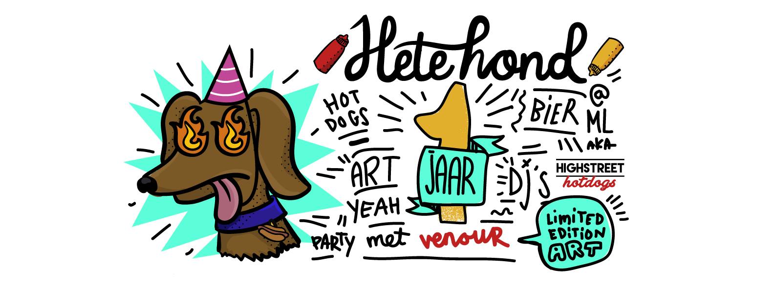 Een van mijn favoriete plekken voor een portie gezelligheid is Highstreet Hotdog in de Hoogstraat. Naast dat je hier terecht kunt voor een goede hotdog, wordt er ook regelmatig een pre-party voor het uitgaan georganiseerd, genaamd Hete Hond. De reden dat ik graag bij Hete Hond kom, is omdat het er niet alleen om de muziek en drankjes gaat, maar dat er ook altijd wat te kijken valt. Zo werden er afgelopen zomer bijvoorbeeld zomerexpo’s georganiseerd met jonge Rotterdamse creatievelingen. Inmiddels bestaat Hete Hond alweer één jaar en dat vieren ze samen met Venour op vrijdag 9 december. De meeste studenten zullen Venour waarschijnlijk kennen van hun kledinglijn, maar de jongens van Venour maken ook toffe en toegankelijke kunst. Van 17.00 tot 23.00 uur kan je, onder het genot van een hotdog, gratis naar deze limited edition serie van Venour komen kijken en het eventueel zelfs kopen. Hé, is dat niet een leuk idee voor een origineel kerstcadeautje?