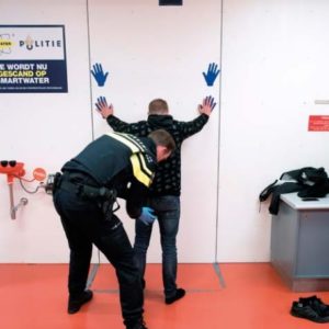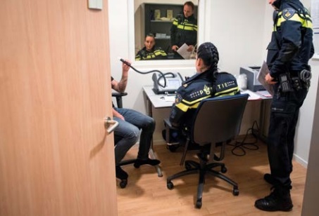 Bij aankomst wordt de scooterbestuurder op zijn rechten gewezen. Daarna moet hij zijn zakken leegmaken, schoenen uitdoen en met zijn handen tegen de muur leunen, zodat Freek hem kan fouilleren.