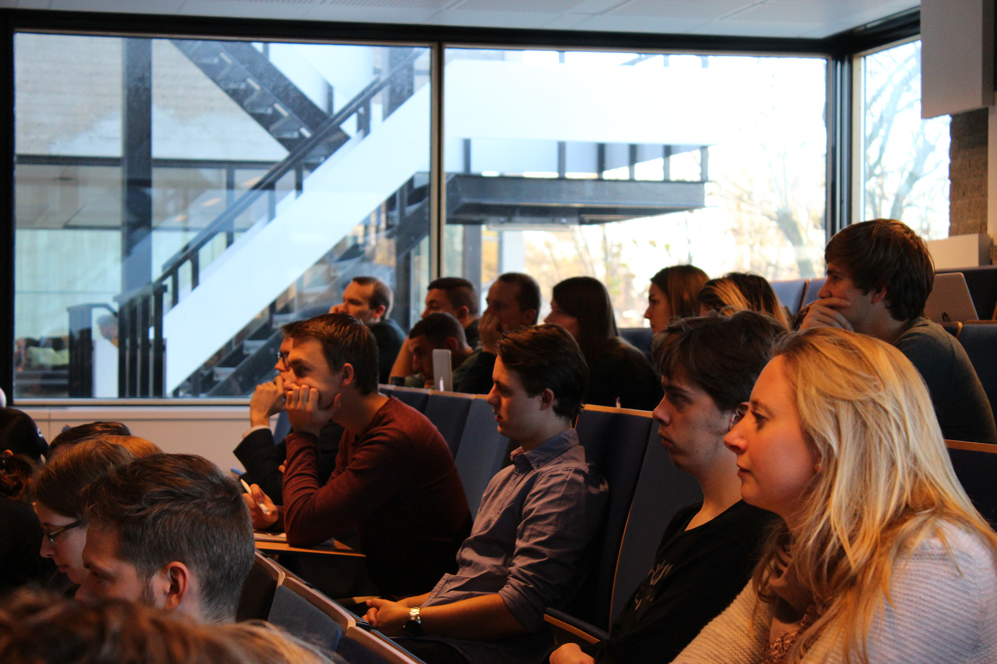Analyses te over in de kranten en weekbladen, maar wat kunnen de Rotterdamse academici vanuit hun achtergrond over president Trump zeggen? Een zeventigtal studenten luistert naar de betogen van de EUR-wetenschappers.