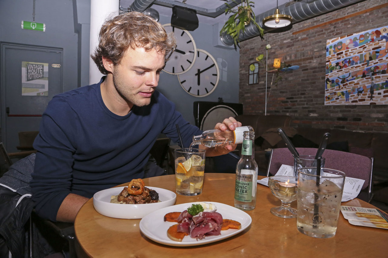 De barman met baard – ‘proef onze fijne varkenswang’ – spreekt van een ‘gemixt’ publiek: veel kunstzinnige types, maar ook de ‘meest grijze kantoormuizen’, maar wel allemaal vallend onder de noemer ‘de wat rijkere, niet al te domme mensen’. “Geen Stadhuisplein-publiek, maar leukere types.”
