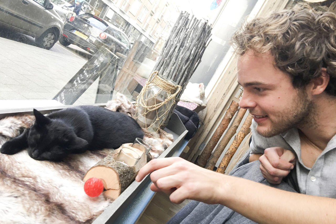 Een student zit met zijn moeder aan een tafel. De twintiger is net jarig geweest, het bezoek aan het kattencafé is zijn cadeau. Kattengek, zo noemen ze zichzelf. Maar: te duur, zo’n dier. En dus biedt het café uitkomst. Op tafel ligt het boek Kattengeheimen. Moeder heeft het over een filmpje dat zij op YouTube zag en dat over kattenkruid ging. ‘Dat is een soort drugs voor katten.’ De jongen knikt, genietend met grote ogen.