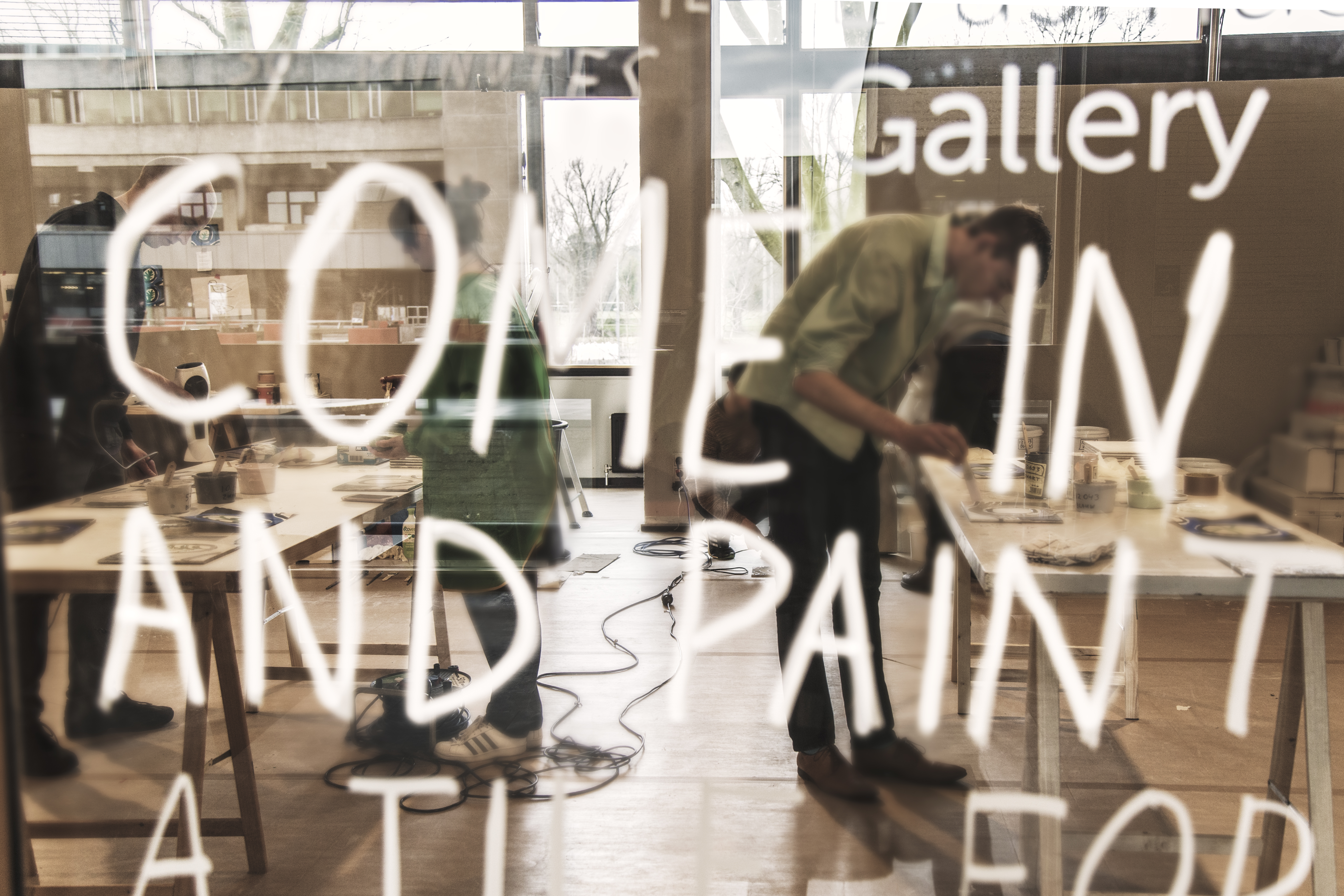 Het is maandagochtend, de eerste dag van het tien dagen durende initiatief, waarbij studenten en personeel keramische tegels beschilderen voor een nieuw decoratieproject. Tot 17 februari zal onder toezicht van de kunstenaar in de Erasmus Gallery aan dit project worden gewerkt. Het uiteindelijke kunstwerk, een muurschildering van 3 bij 15 meter, zal komen te hangen in de nieuwe bibliotheek, die eind mei haar deuren voor het publiek zal openen.