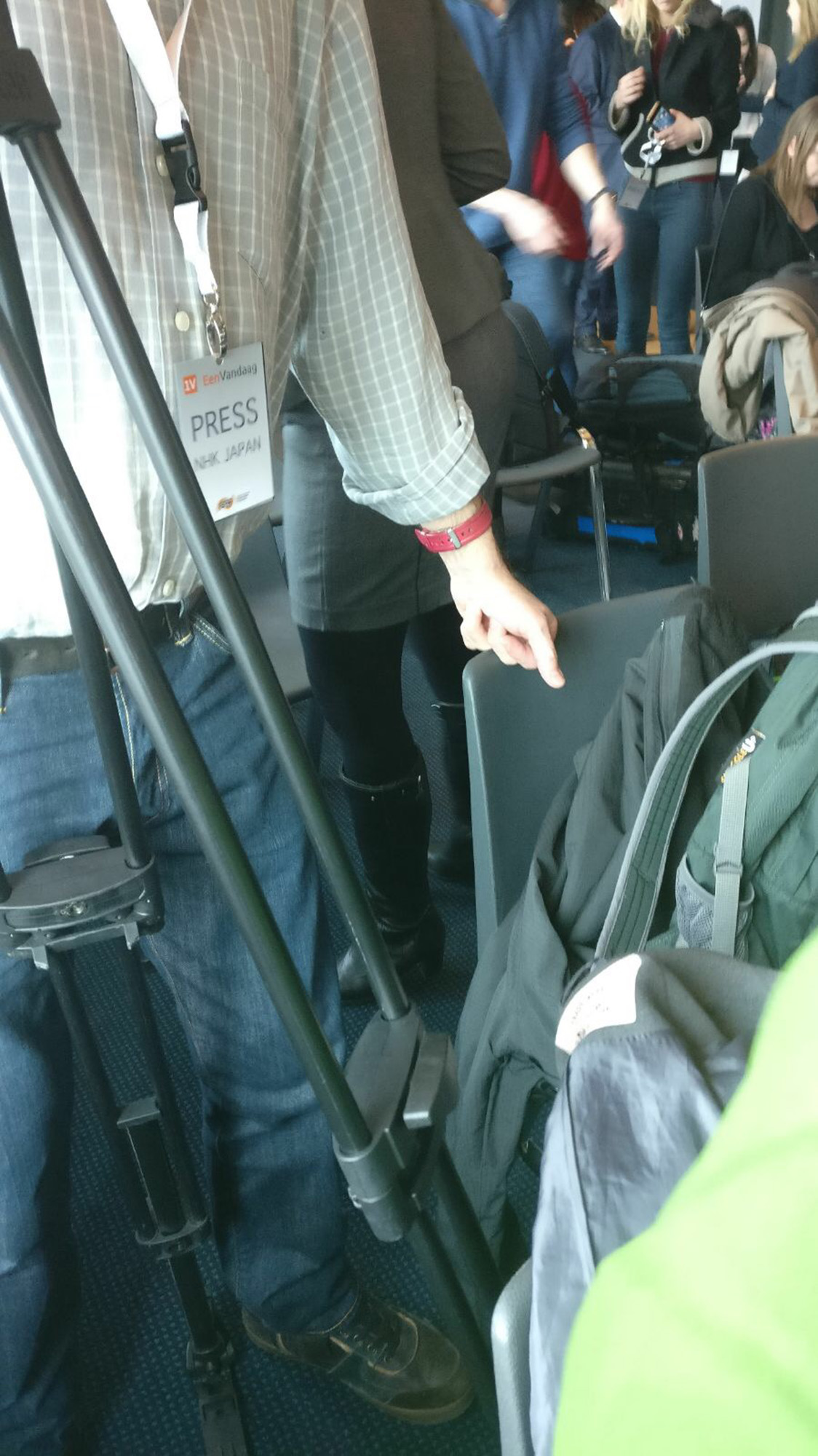 Niet alle journalisten mogen het debat vanuit de zaal volgen. In een apart zaaltje zitten vooral filmploegen en fotografen. De zaal zit helemaal vol. Sommige buitenlandse media filmen de livestream zelfs, omdat ze in de zaal geen opnames mogen maken.