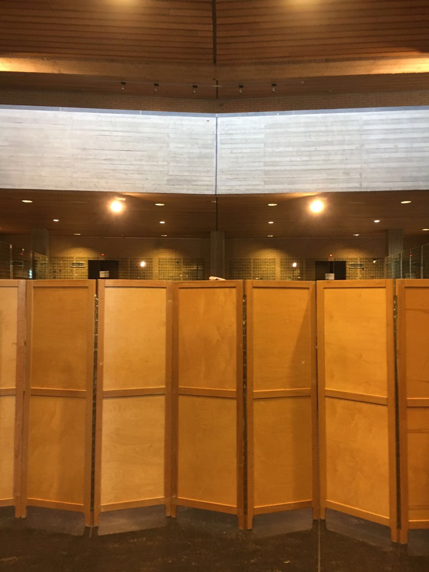 De Aula lijkt helemaal klaar te zijn voor de toeschouwers en de twee kemphanen, maar het is nog stil binnen. Officieel zouden de deuren om 16.30 uur opengaan. Toch moeten studenten nog even geduld hebben, want de beveiliging laat nog niemand binnen. “We wachten nog op de bevestiging dat iedereen erin mag”, zegt een van de beveiligers.