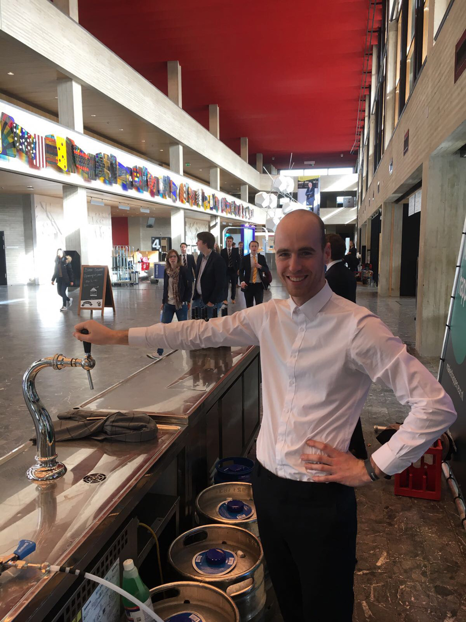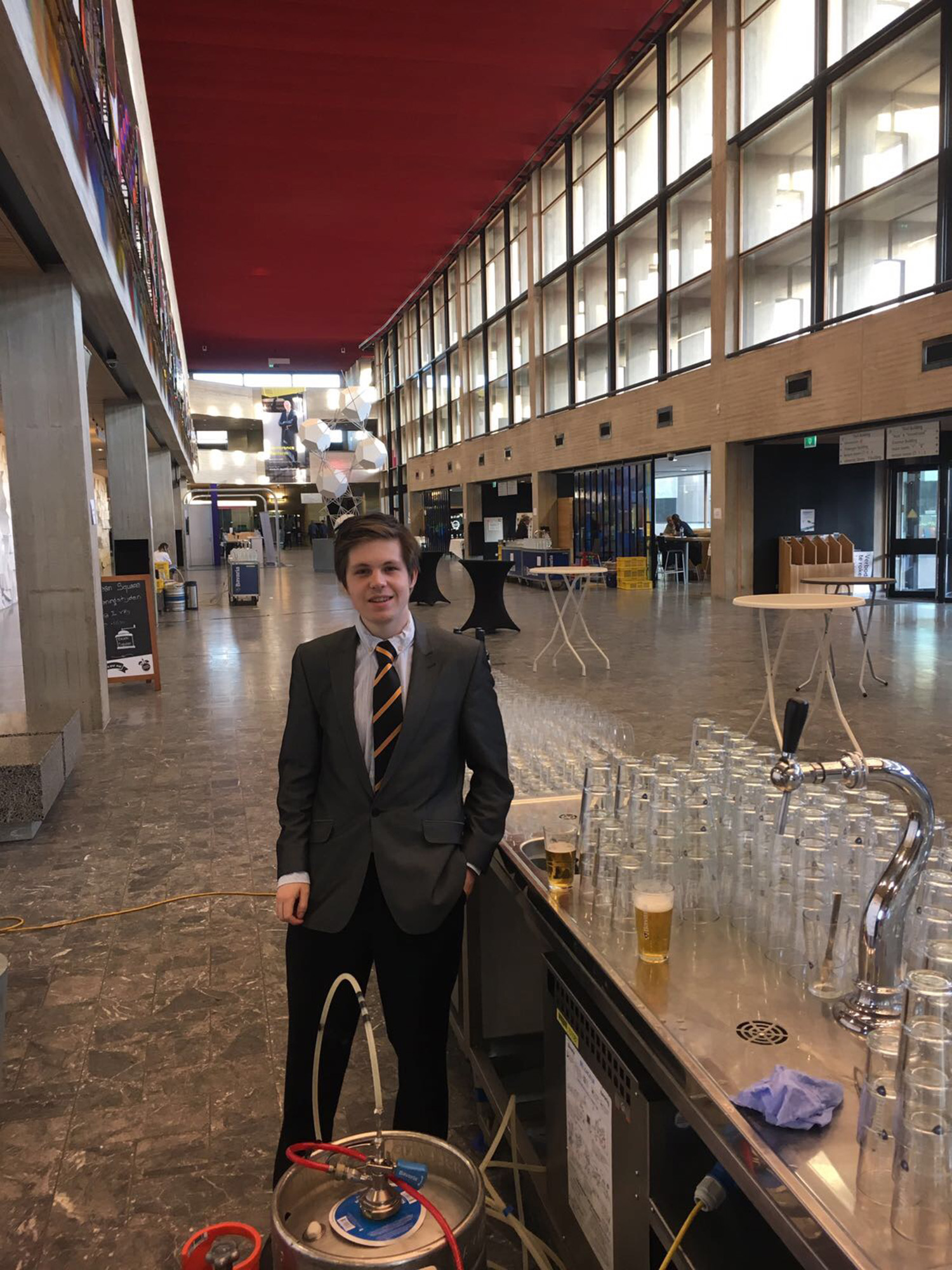 Het is nu nog heel rustig terwijl Wilders en Rutte debatteren over de zorg, maar Adrian kan z’n borst zometeen natmaken. De borrel na het debat is in de hal van het Theilgebouw en de Engelsman is verantwoordelijk voor een van de bars. “Het zal erg druk worden, maar dat is alleen maar goed.” Hij is blij met zijn plek achter de bar. “Als international heb ik bij het debat niet veel te zoeken. En hier kan ik ook af en toe wat te drinken voor mezelf inschenken.”
