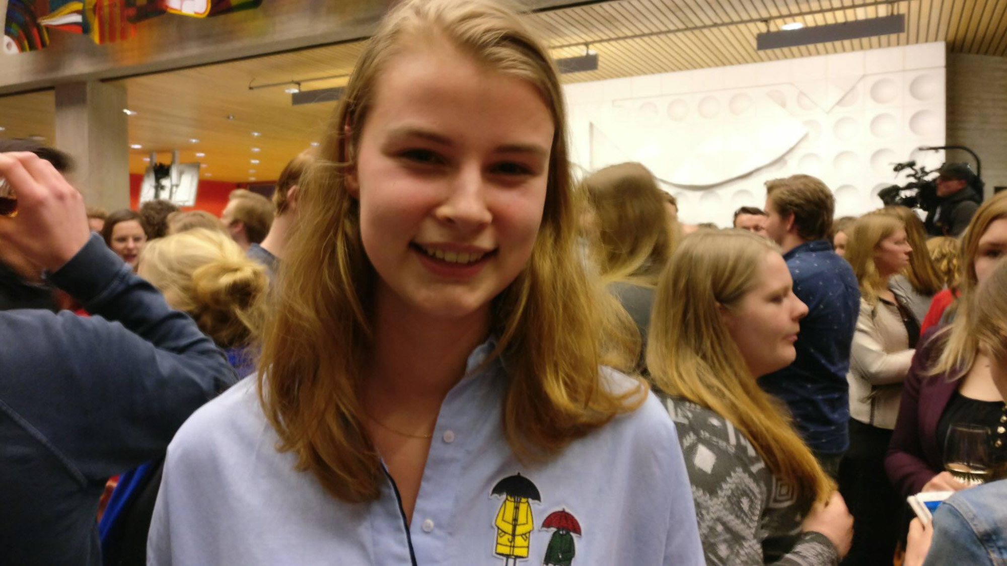 Adinde (18) studeert Geneeskunde en volgde het debat in de Aula. “Heel leuk om ze een keer tegenover elkaar te zien. Het ging wel heel snel, en soms hard tegen hard. Ik denk dat vooral Rutte hoopte met dit debat kiezers te trekken die bang zijn dat de PVV de grootste wordt. Maar nu bijvoorbeeld GroenLinks zo groot is in de peilingen is dat niet meer zo hard nodig. Zelf denk ik D66 te gaan stemmen, maar ik wil me er eerst nog wat in verdiepen.”