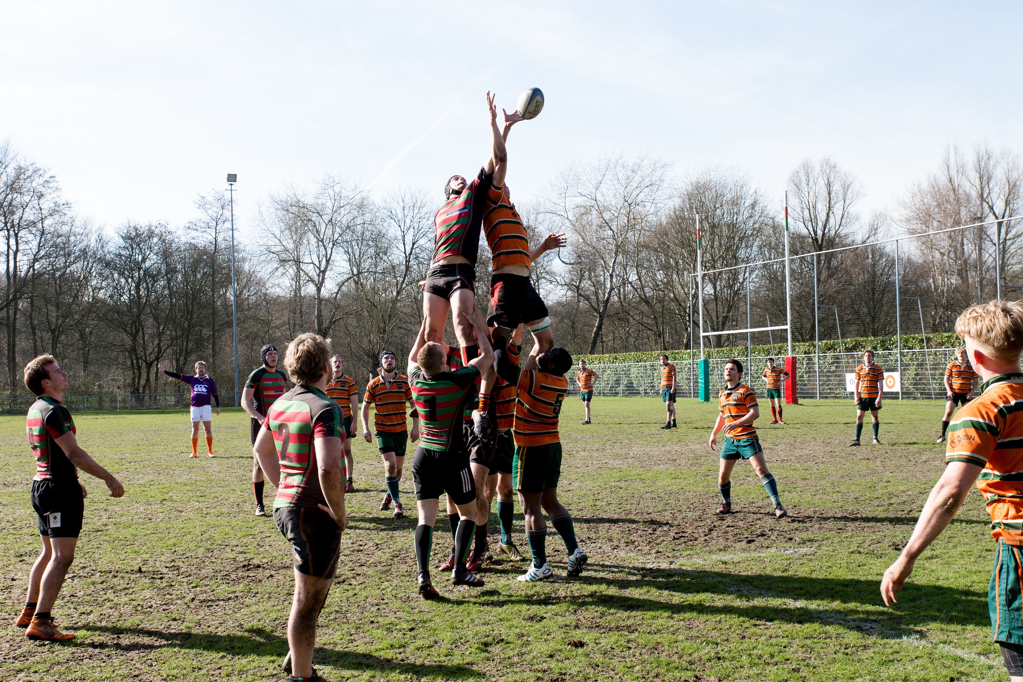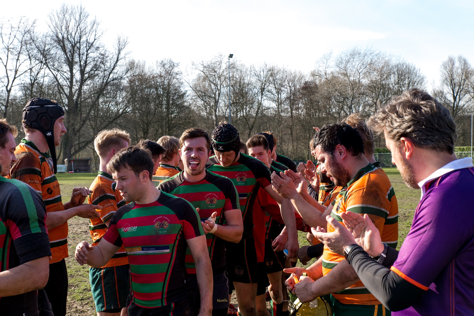 De veertig toeschouwers genoten namelijk niet enkel van een warme lentezon, maar zagen ook RSRC shinen. Binnen tien minuten stonden de Rotterdamse studenten op een 24-0 voorsprong. Bij gebrek aan wind creëerden de rugbyers zelf een storm van tries.