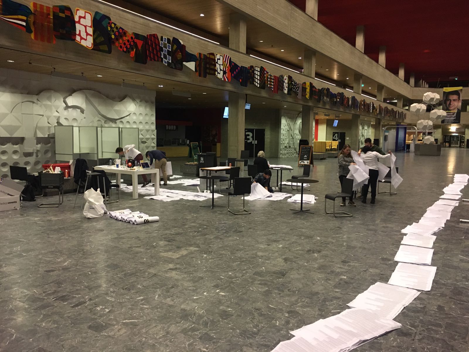 Student Léon Vervooren was voorzitter van het stembureau tijdens de ‘middagshift’ en daarmee ook verantwoordelijk voor het tellen van de stemmen. “Het is goed druk geweest op dit stembureau, vooral in de ochtend stond er een rij. De gemeente volgt via een app hoeveel stemmen er zijn uitgebracht, en heeft toen nog een extra doosje stembiljetten gestuurd. Nadat de laatste colleges waren afgelopen werd het rustig. Ik schat in dat vooral studenten en medewerkers van de universiteit hier hebben gestemd, en weinig mensen uit de omliggende wijk.”