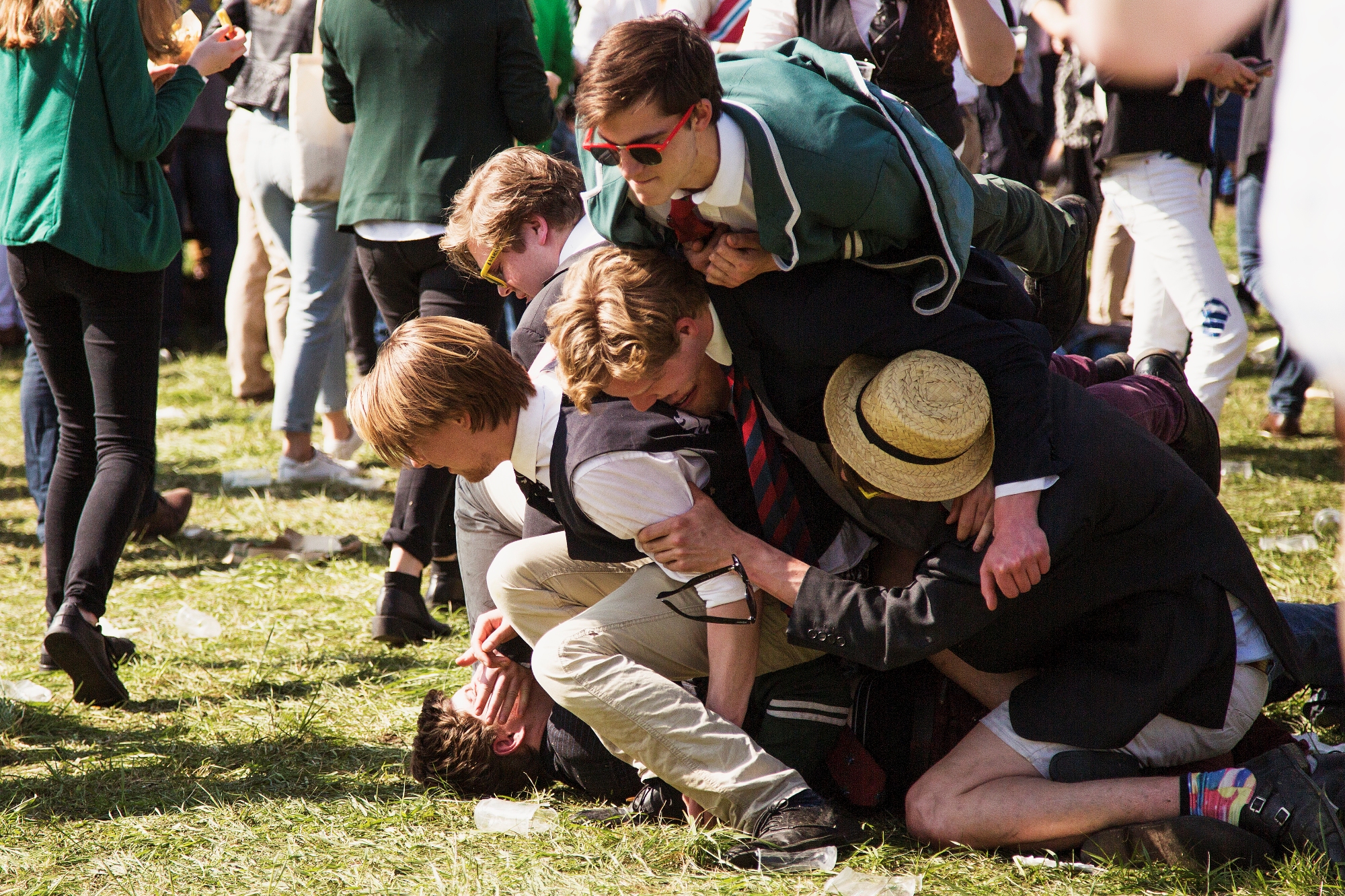 Dan volgt de grande finale van de Oude Vier. Ter voorbereiding pissen enkele studenten vanaf de kant in het water. Nereus en Triton uit Utrecht beleven een sterke start, terwijl Skadi wat blijft hangen. Als de boten de finish naderen, klimmen de Skadi-fans op elkaars schouders. “Allee Skadi!”, klinkt het luid. “Nu komt Skadi echt opzetten”, roept een fan, terwijl de Rotterdammers verder terrein verliezen. Het enthousiaste gezang gaat naadloos over in boe-geroep als Nereus op het nippertje wint. “Dit is echt zuur”, vindt Kalinichenka. “Niemand hier was voor Nereus, behalve zijzelf.”