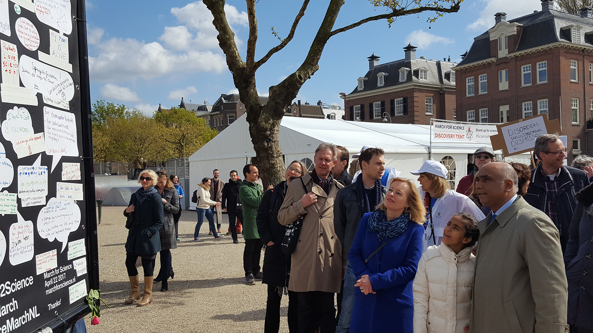 Wetenschap is ‘ook maar een mening’? Tijd om daar tegen in opstand te komen, vonden wetenschappers en hun sympathisanten in een kleine vijfhonderd steden wereldwijd. Zo ook op het Amsterdamse Museumplein, waar zaterdagmiddag drieduizend mensen op de been waren.